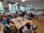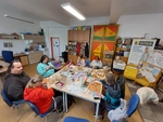 Při setkání ze 20. října se nás na pobočce sešlo nebývale mnoho. V programu bylo totiž zajímavé kombinované tvoření dvou věcí najednou. Uvědomujeme si, že ne všichni zvládnou, co si na ně vymyslíme, proto při tvoření volíme lehká a těžší věci.