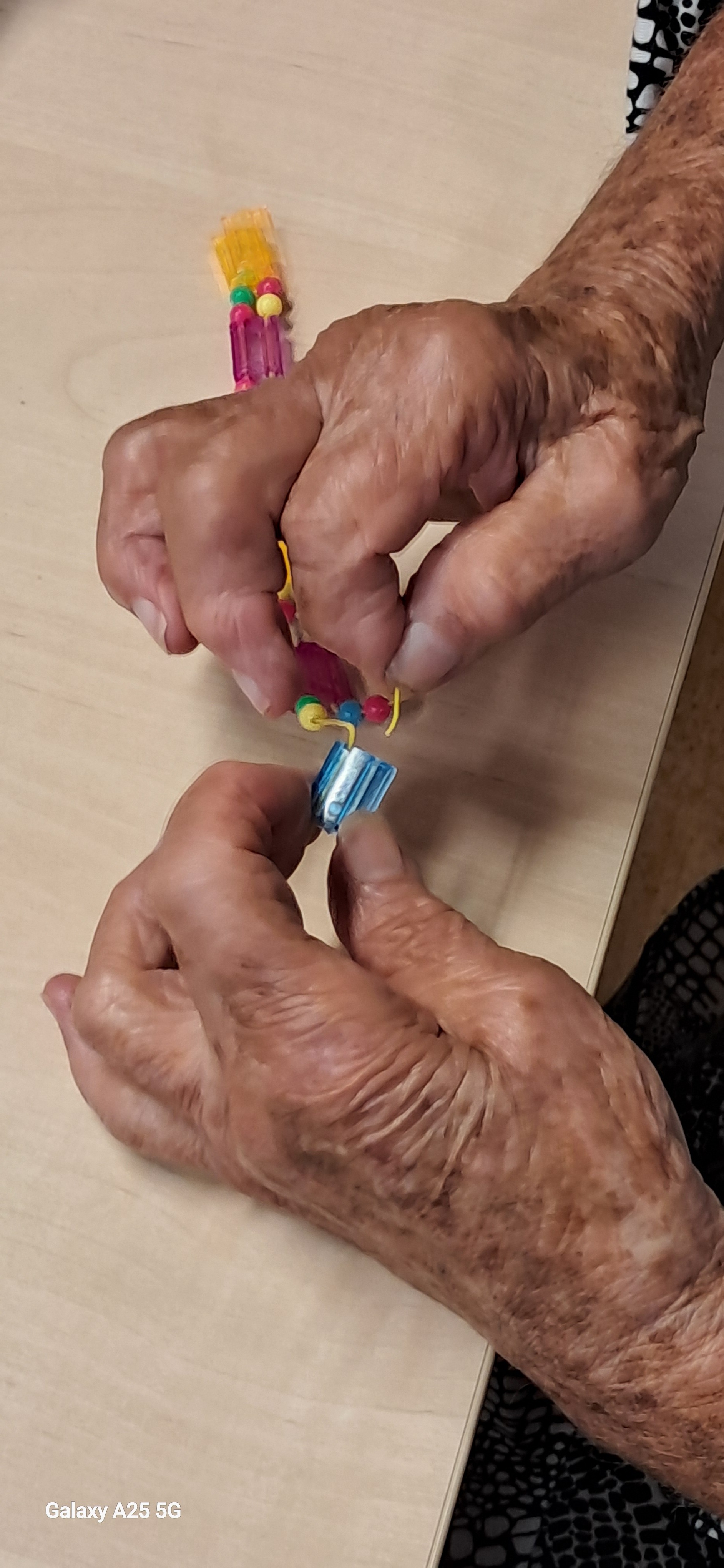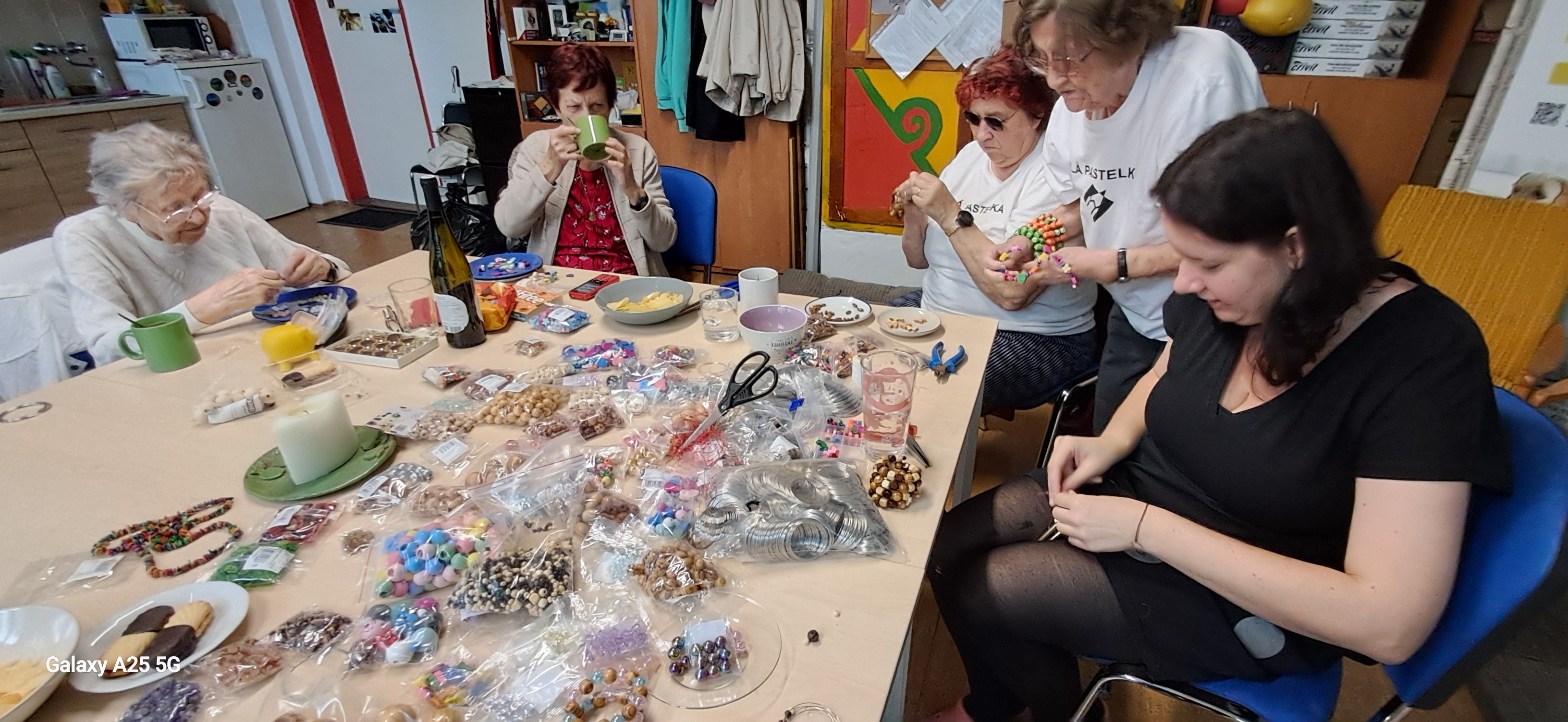 Ve stejném týdnu, kdy jsme dělali zvonkohry, zapojili naši členové své šikovné ruce i do výroby korálkových náramků.