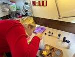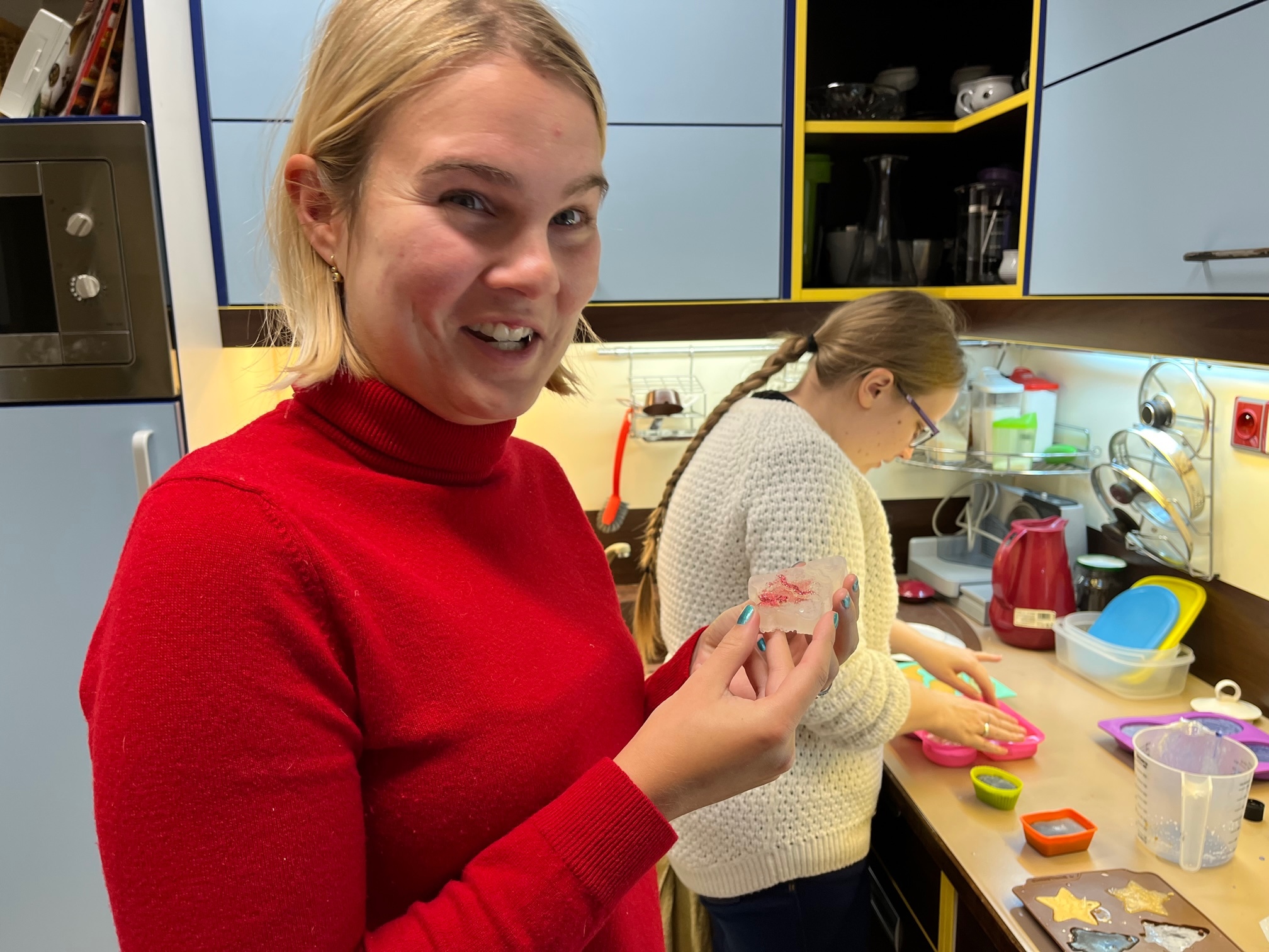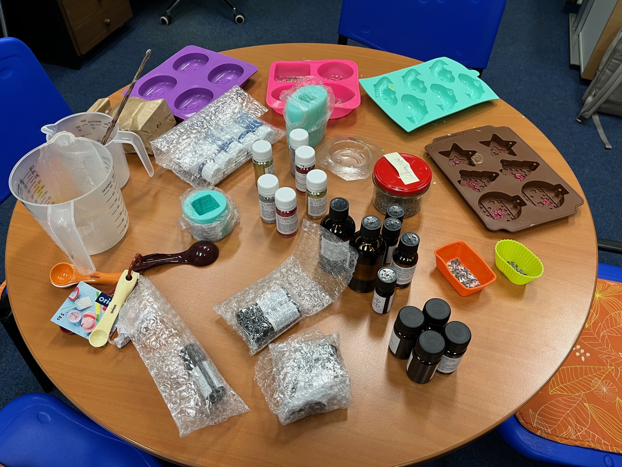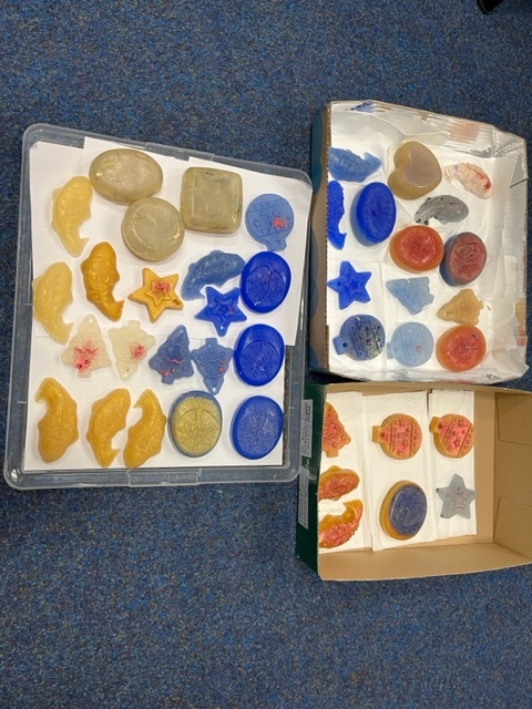 Na odbočce SONS OO Praha západ/KC Vrchlická se pravidelně setkáváme na mini dílničkách, kde tvoříme různě barevná a tvarovaná mýdla. Společně se domluvíme, jak asi by mýdla měla vypadat, uděláme si představu, co všechno by mohla obsahovat a pak se snažíme o dokonalé výtvory. Dolaďujeme všechny mýdélka i třpytkami, hvězdičkami, vůněmi, různými přídavnými složkami, což může být bambucké máslo, speciální mléko, esenciální oleje, to proto aby byla hebká a hezká a voňavá.