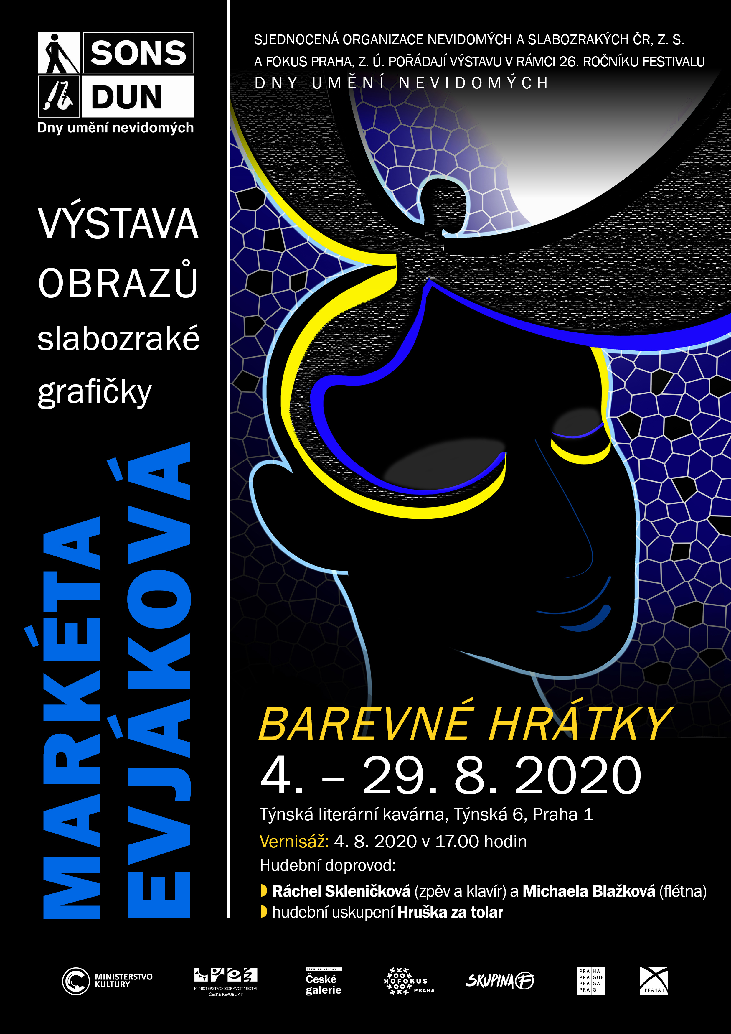Vernisáž výstavy se uskuteční v úterý 4.8.2020 v 17:00 hodin, hudební doprovod zajistí klavíristka Ráchel Skleničková a flétnistka Michaela Blažková.