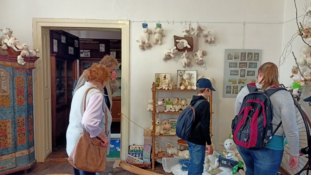 Prohlédli jsme si tak největší sbírku oveček a beránků v nejrůznějších podobách a z různých materiálů v České republice, která vzniká od roku 2010 a dnes čítá na 5 tisíc exponátů. Paní průvodkyně se nám věnovala a povyprávěla mnoho zajímavostí nejen k výstavě samotné, ale i k historii muzea a městečka Železnice. Dohodli jsme se i na případné další návštěvě a spolupráci s naší jičínskou odbočkou. Někdy se zde konají i haptické expozice, což by pro naše členy bylo velmi přínosné.