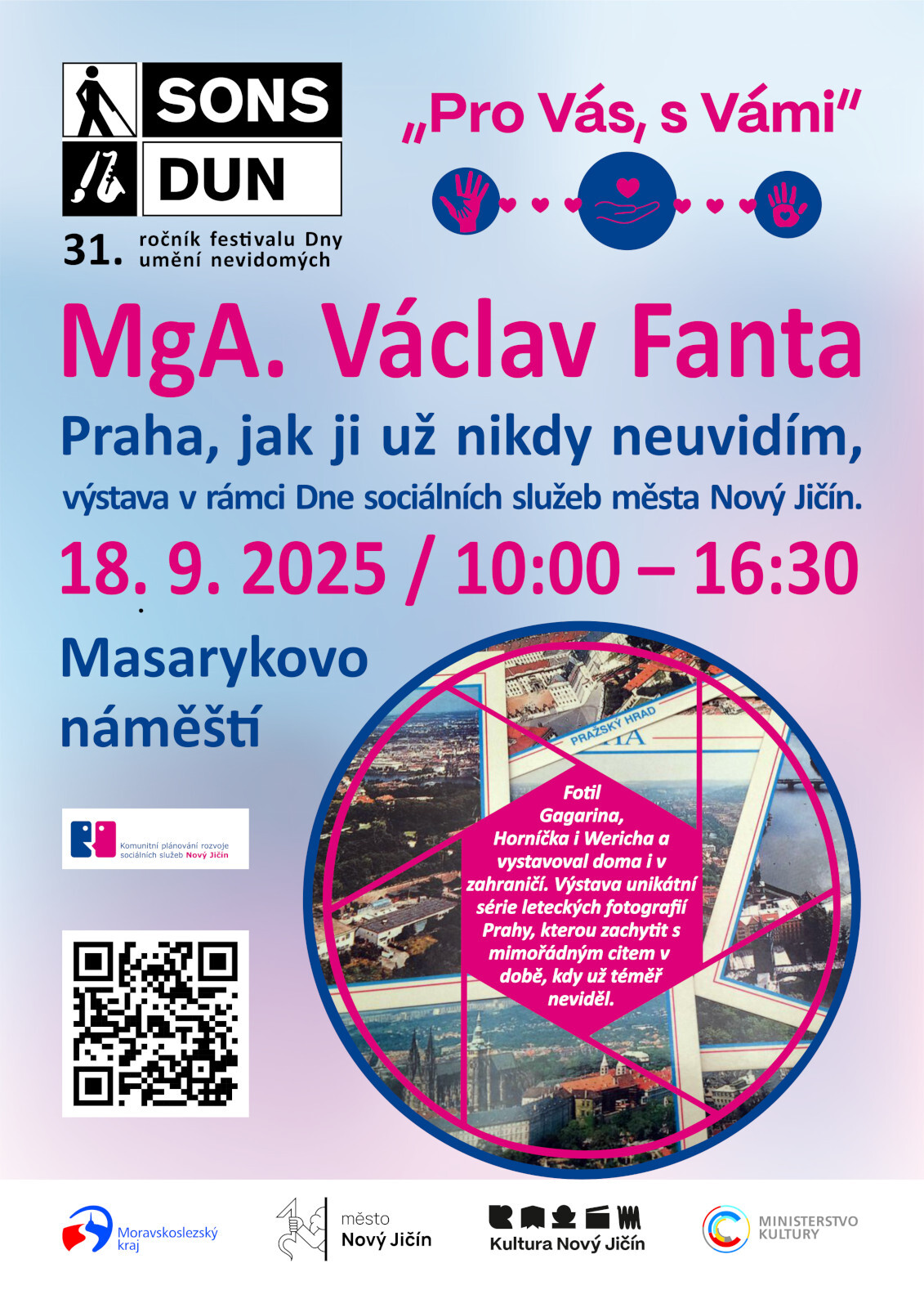 Zveme Vás na výstavu leteckých fotografií Prahy z počátku 90. let Václava Fanty, která proběhne 18. září od 10:00 do 16:30 ve stanu na Masarykově náměstí v Novém Jičíně v rámci festivalu Dny umění nevidomých a Dne sociálních služeb města Nový Jičín.