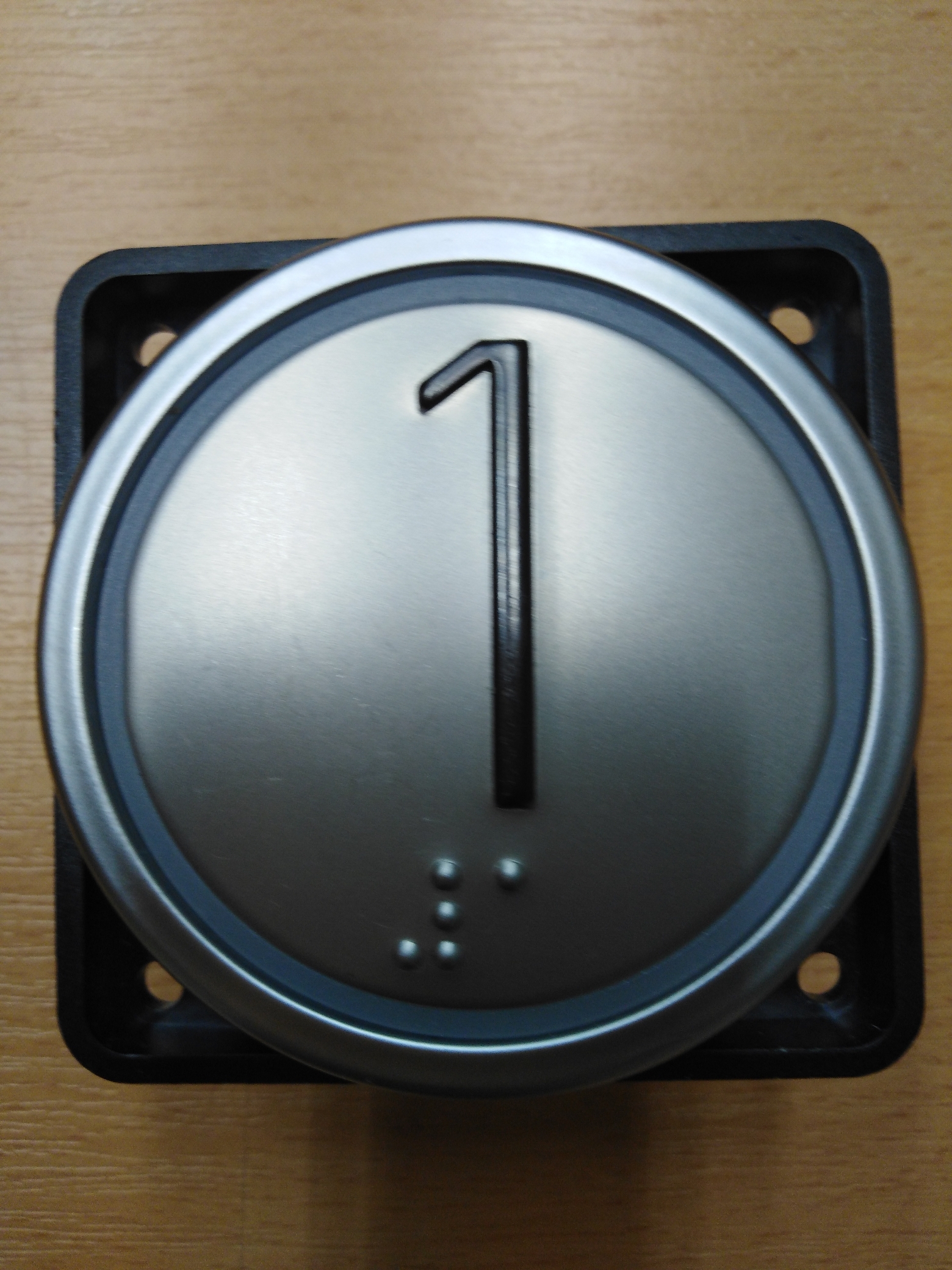 3.2.1. Ovladače v kleci výtahu a na nástupních místech do výtahu musí vyčnívat nad povrch okolní plochy nejméně o 1 mm. Reliéfní značky nesmí být ryté a vpravo od ovladače musí být příslušný Braillův znak s parametry standardní sazby. Pouze na klávesnicové ovladačové kombinaci se Braillův znak nemusí provádět. Další požadavky na provedení ovladačů výtahů a na jejich označení reliéfními značkami stanoví příslušné normové hodnoty.