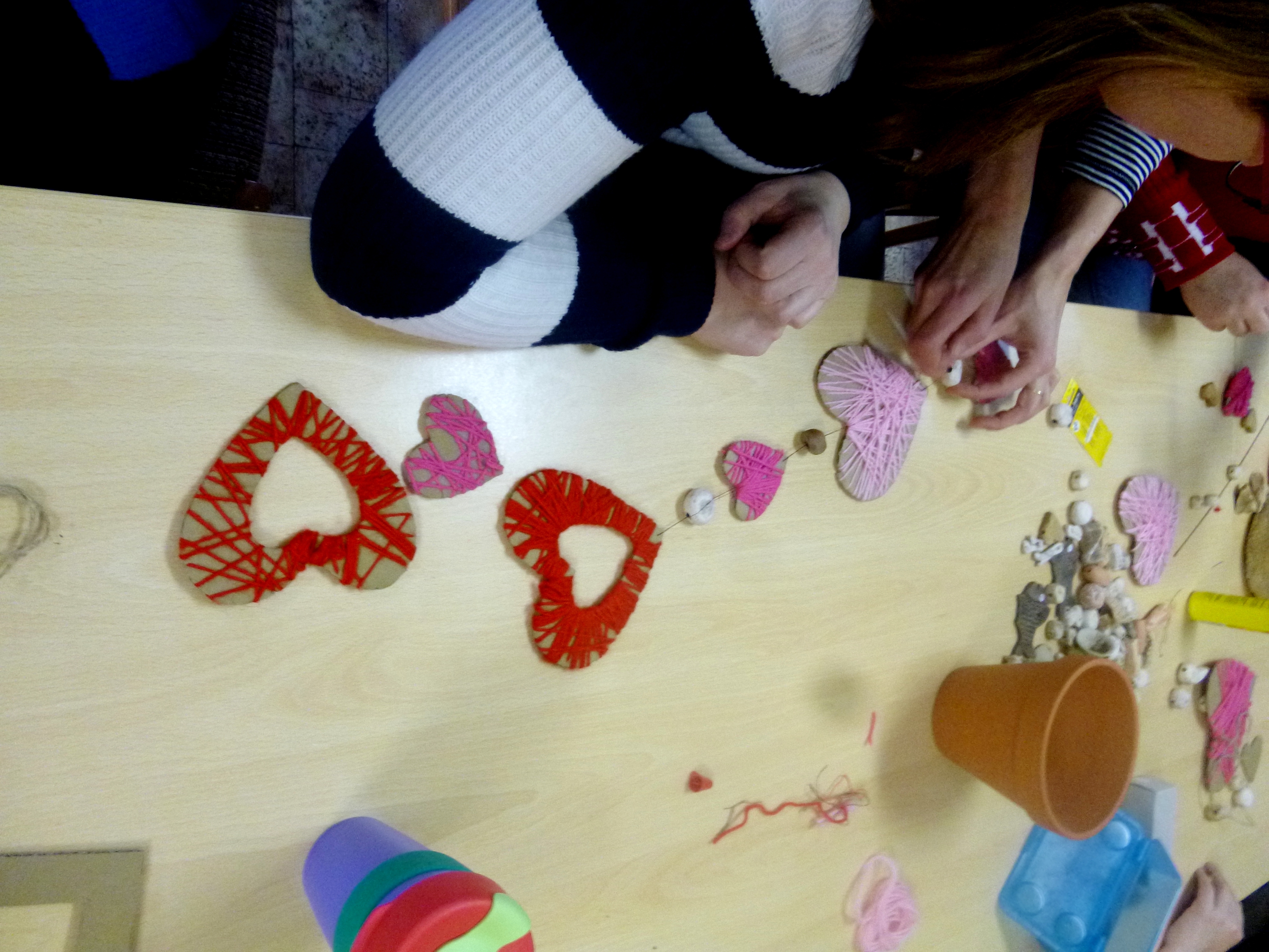 Náplň práce je velmi různorodá, poněvadž všechny techniky podporují procvičení jemné motoriky a ve finále potěší, buď výrobce, nebo někoho blízkého. Pokud se má konat výtvarná dílna v první polovině února, v období před svátkem sv. Valentýna, nemohou chybět srdíčka. Tentokrát papírová, omotaná červenou nebo růžovou vlnou, takto vznikne krásná závěsná dekorace, nebo Valentynka pro někoho milého.