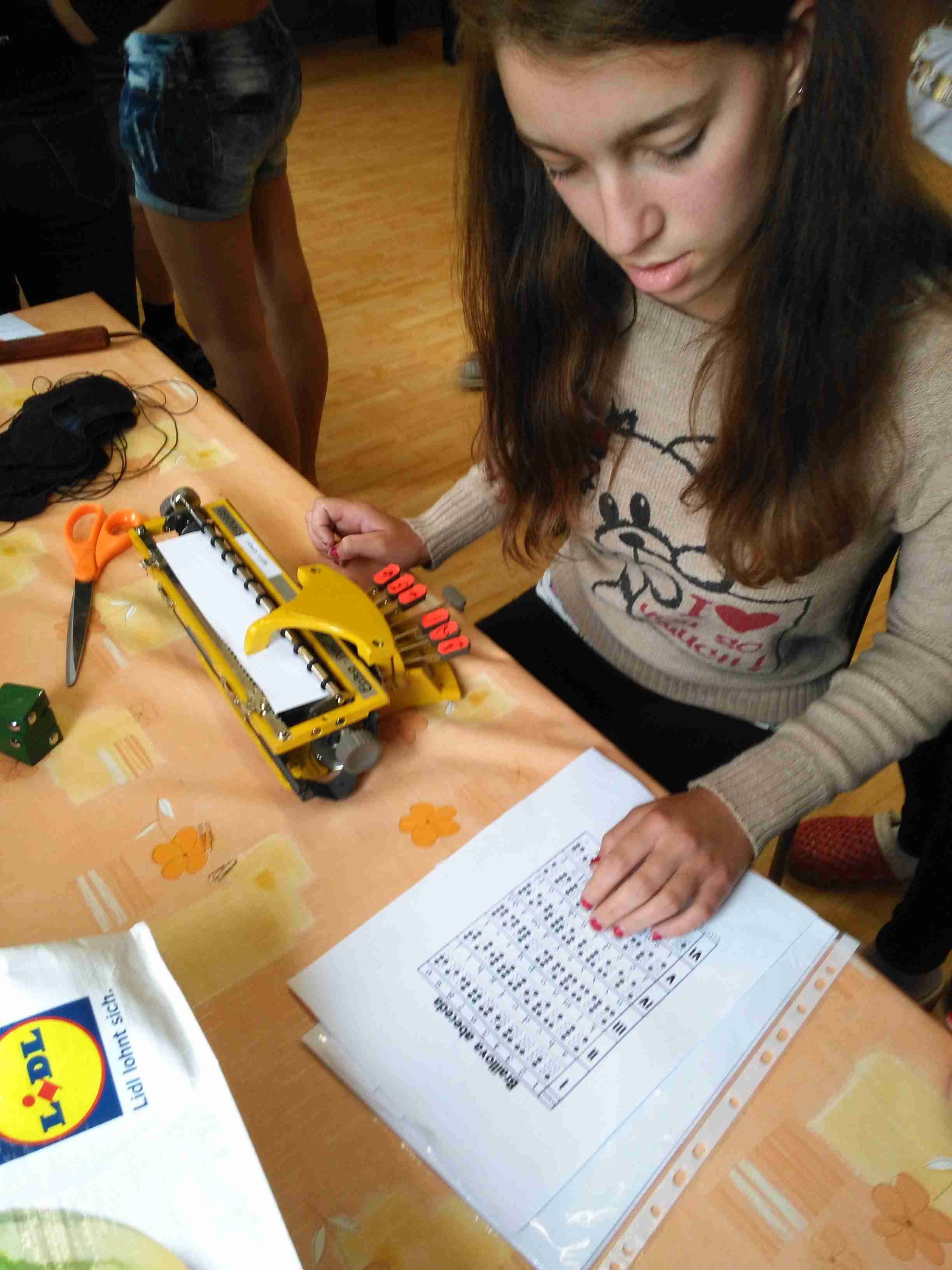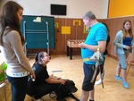 Dopoledne strávené v základní škole Bučovice přineslo žáky mnoho zajímavého a poučného. Pracovníci kyjovské odbočky představili žákům kompenzační pomůcky, které zrakově postižení a nevidomí lidé používají k samostatnému životu, proškolili je jak pomoci, jak vodit nevidomé lidi a vtáhli je do činností běžného dne nevidomého.