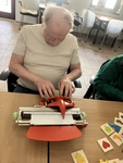 Vzděláváme se - procvičování psaní na Pichtově psacím stroji, cvičení jemné motoriky a soustředění.