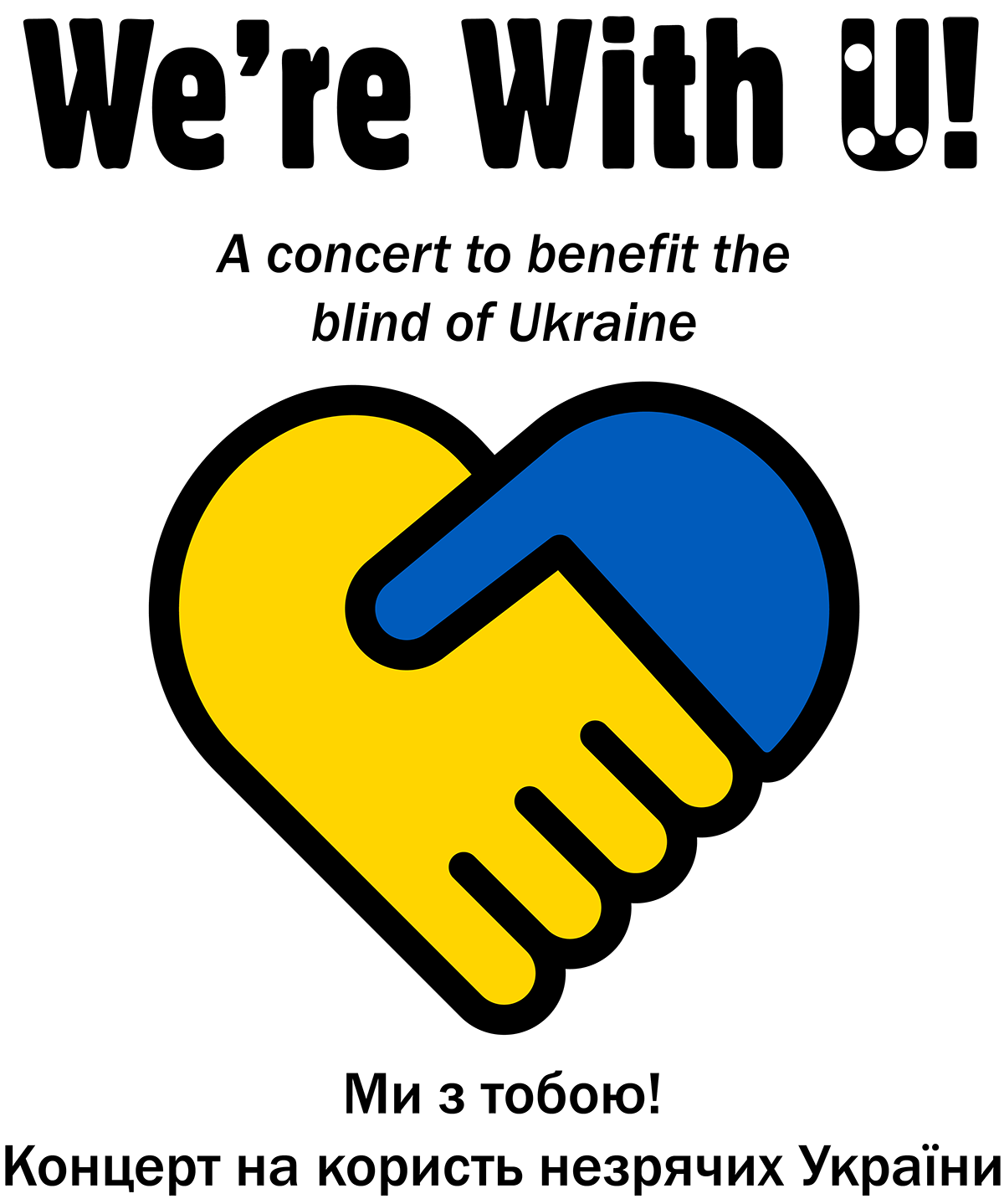 Výslovnost názvu koncertu „We’re with U“ lze chápat jako „Jsme s vámi“, písmeno U v psané podobě názvu, ale odkazuje na to, že jsme s Ukrajinou. Sejděme se tedy alespoň virtuálně u společného hudebního zážitku, a pokud je to možné, buďte s ukrajinskými zrakově postiženými nejen našimi myšlenkami, ale i účastí na finanční pomoci.