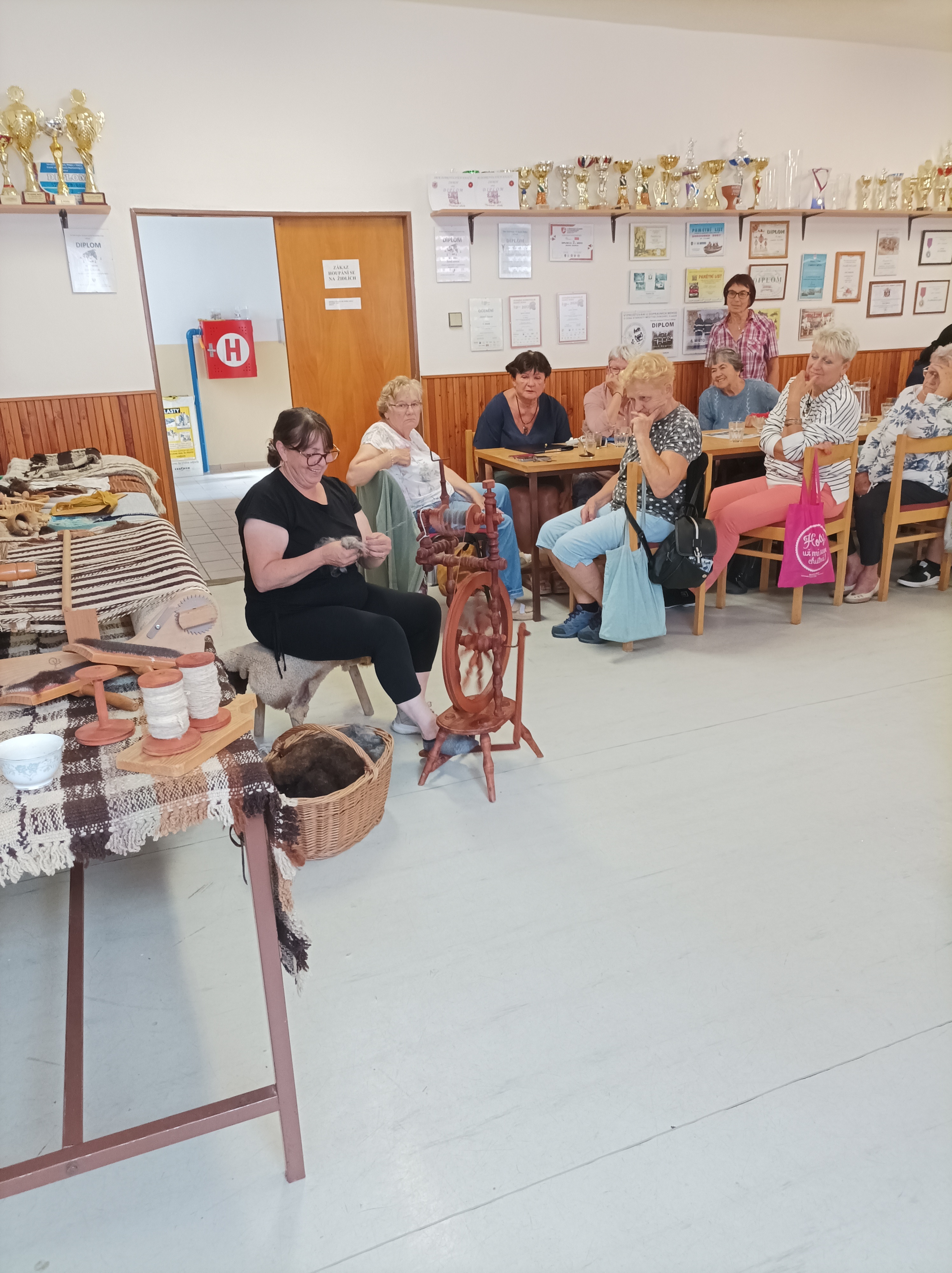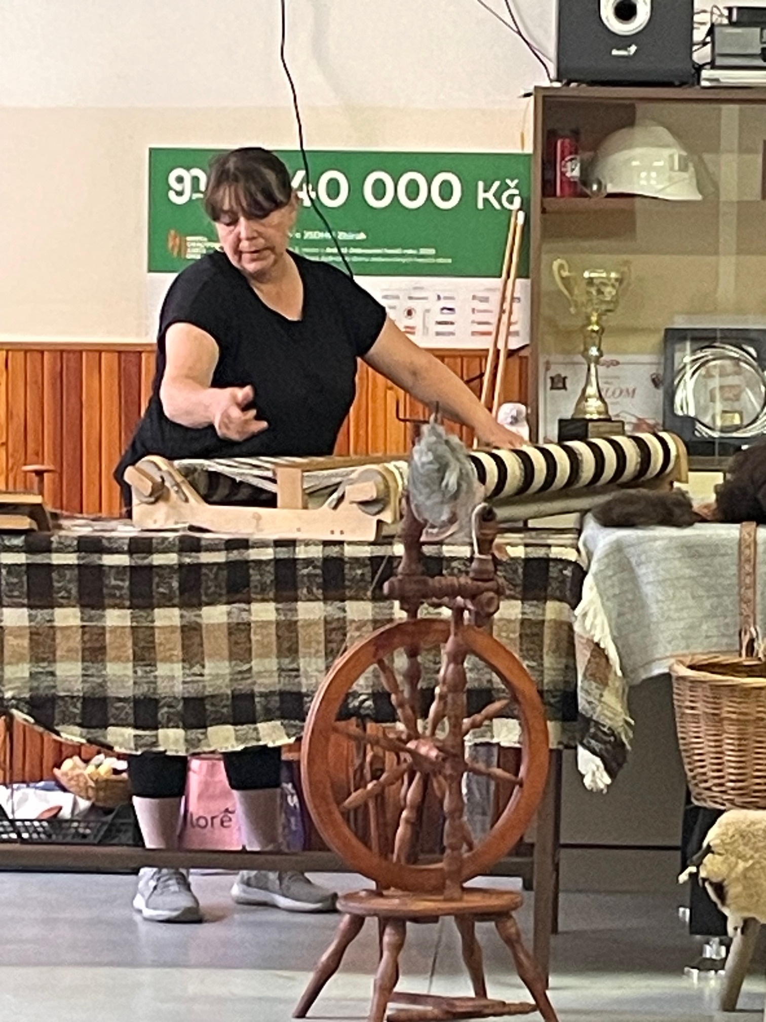 10.9.2024 proběhl workshop tkaní, pořádaný naší odbočkou Rokycany, který jsme se tentokrát rozhodli uspořádat ve Zbirohu. Přednášející p. Marounková i se svým manželem, jsou členy Vousova kmene / Kelti, který postavil, dále vytváří a spravuje Keltský skanzen Jivjany. Tady se při pořádaných akcích návštěvníci seznámí nejen s tkaním, ale setkají se například s hrnčířstvím, ražením keltských mincí, odléváním bronzu, a s dalším umění starověku. Ona sama se zabývá výrobou tkanin jak ve starověku, tak i v pozdější době. Na naši akci, přivezla vše od kolovrátku, až po ukázku oblečení a výrobků. Seznámila nás s celým postupem výroby, mohli jsme si osahat surovou vlnu, poté již zpracovanou a nakonec vyrobené látky. Následovala praktická ukázka česání vlny, výroby nití na kolovrátku a následně samotného tkaní na stavu i karetkách, které se používají na výrobu tkaných opasků. Na závěr jsme si vyzkoušeli samotnou výrobu a z blízka si prohlédli tkané oblečení. Přednáška zaujala nejen ženy, ale i přítomné muže natolik, že mají zájem o uspořádání výletu na uvedený skanzen. V plánu na příští rok, máme tedy celodenní výlet s pestrým programem.