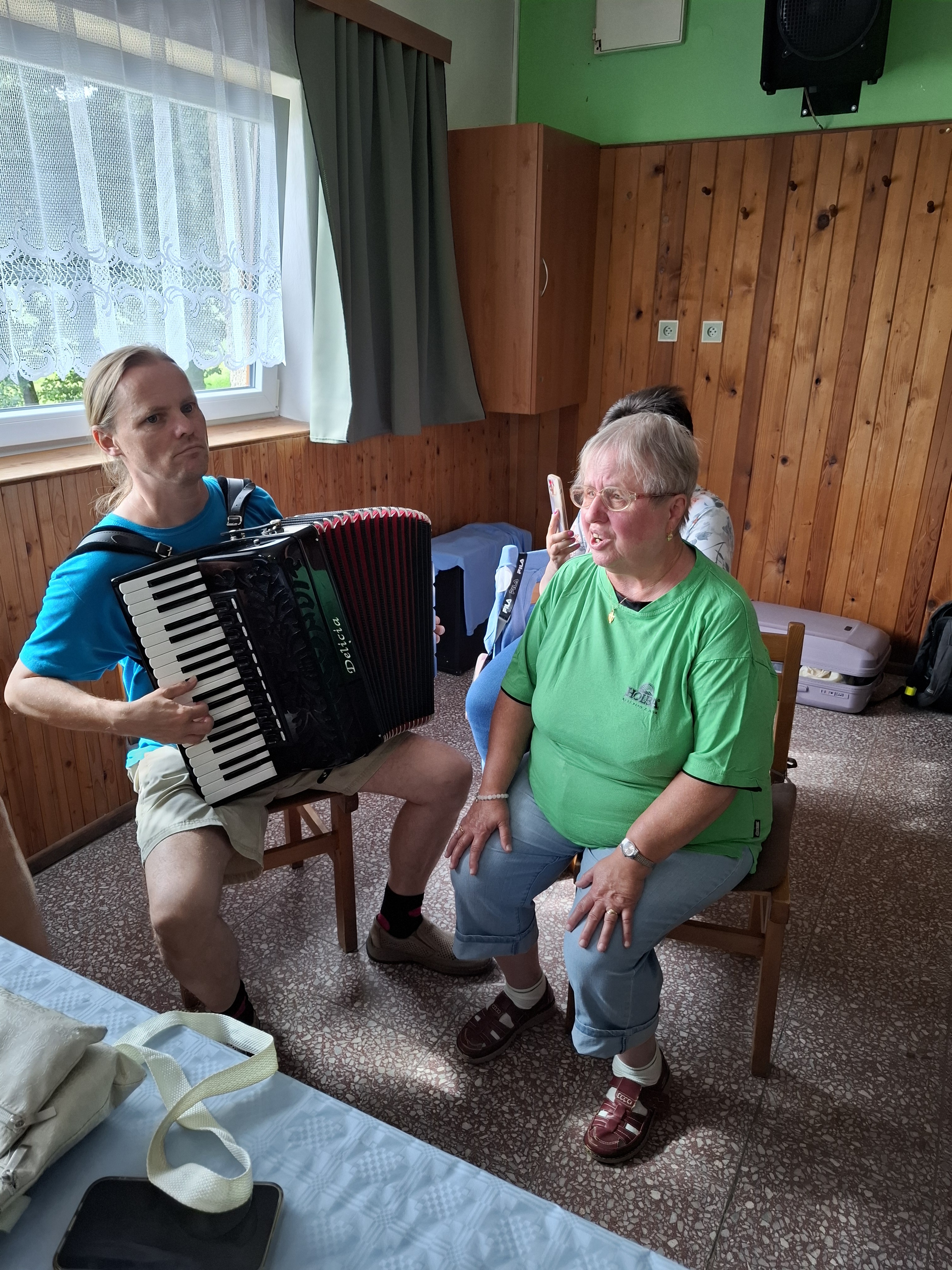 Programem nás rád poctil svou milou návštěvou harmonikář a zpěvák Petr Bazala, který navštěvoval ZŠ pro nevidomé a slabozraké v Opavě, v době, kdy jsem i já sama do této školy též jezdila. Bylo to pro nás oba nečekané srdeční báječné setkání po nádherných 38. letech po mém ukončení této ZŠ. Petr hrál i zpíval moc hezky, splnil přání v zahrání pár písní pro návštěvníky, a moc si vychvaloval příjemnou atmosféru na myslivně. Petře, srdečně moc ti děkuji za nádherný den, co se nedá ničím a nikým zničit jen..