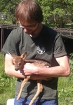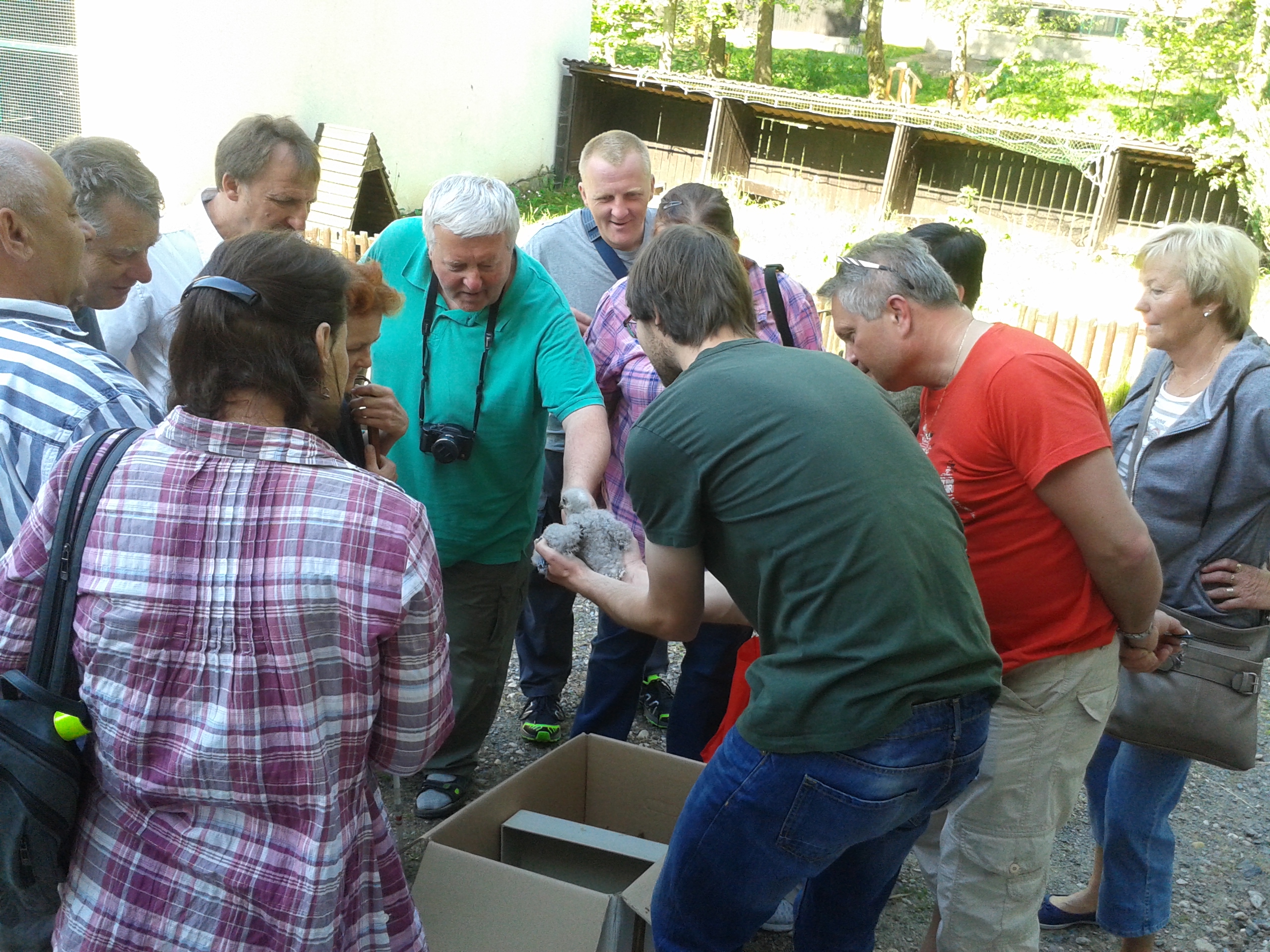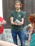 V dutině pařezu za bránou se schovával výr velký. Předvedl nám, že nemá vůbec rád, když mu někdo ruší soukromí - syčel jako had a klapal zobákem. Díky ochotě a vstřícnosti pracovníků stanice jsme mohli vidět a pohladit si netopýra, 2-3 týdenní mláďata kání, tři malé veverky, asi týdenní srnečku a kunu.