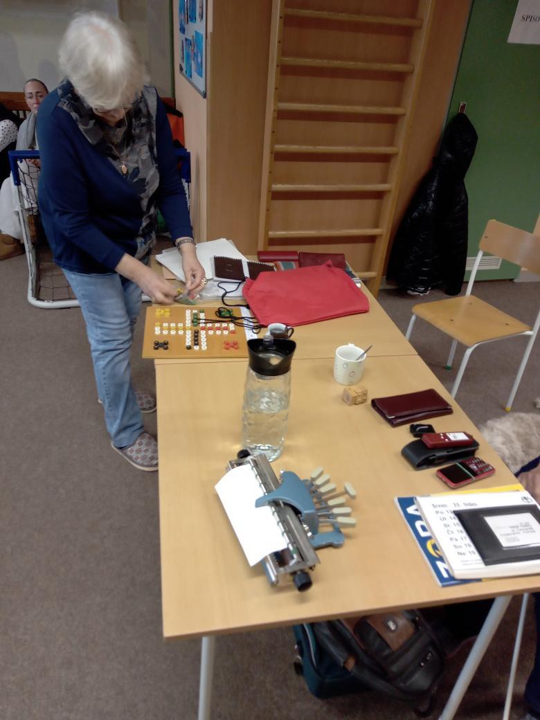 rozlišovač bankovek. Samozřejmě došlo i na Braillovo písmo, jak vzniklo,