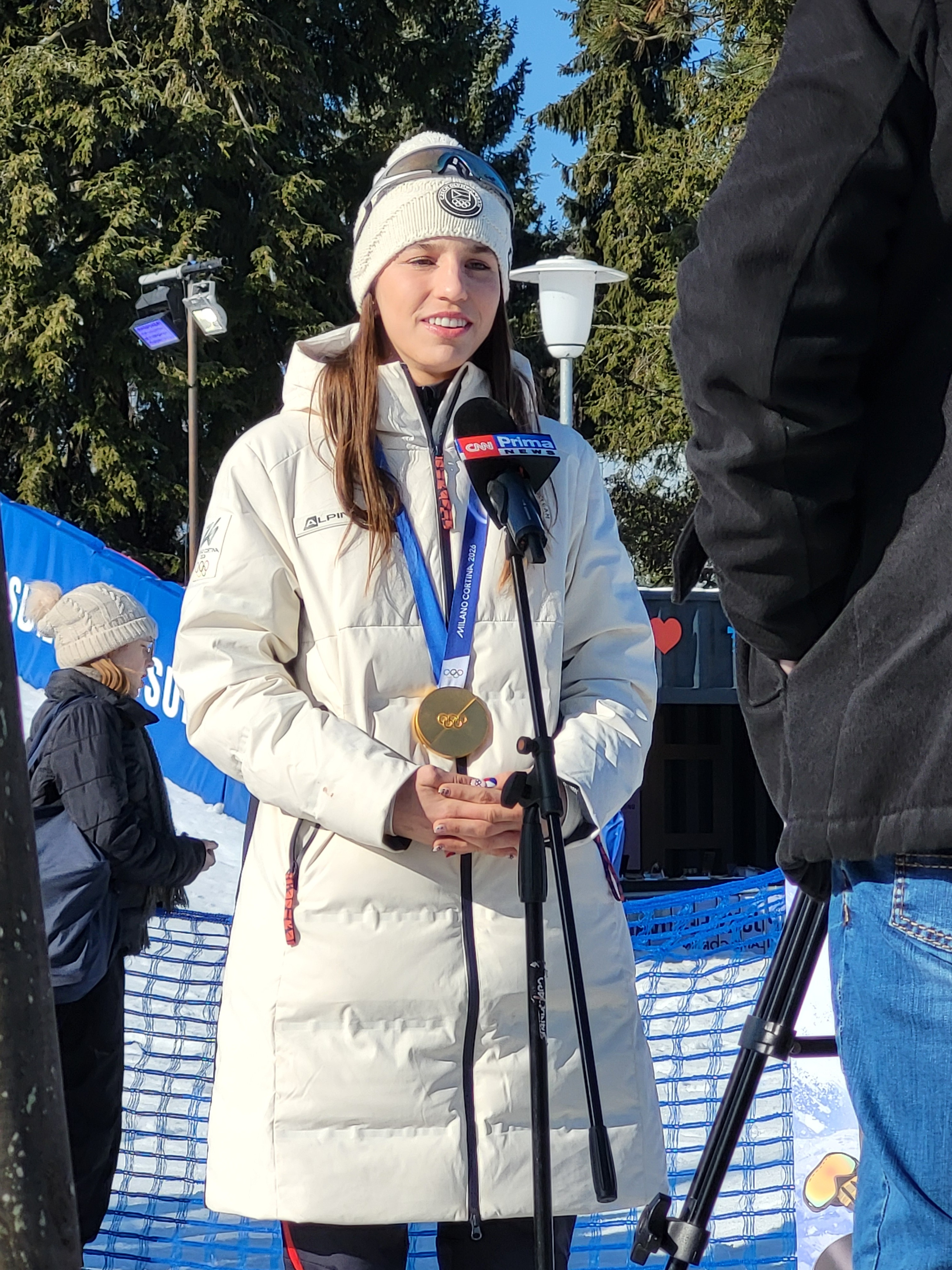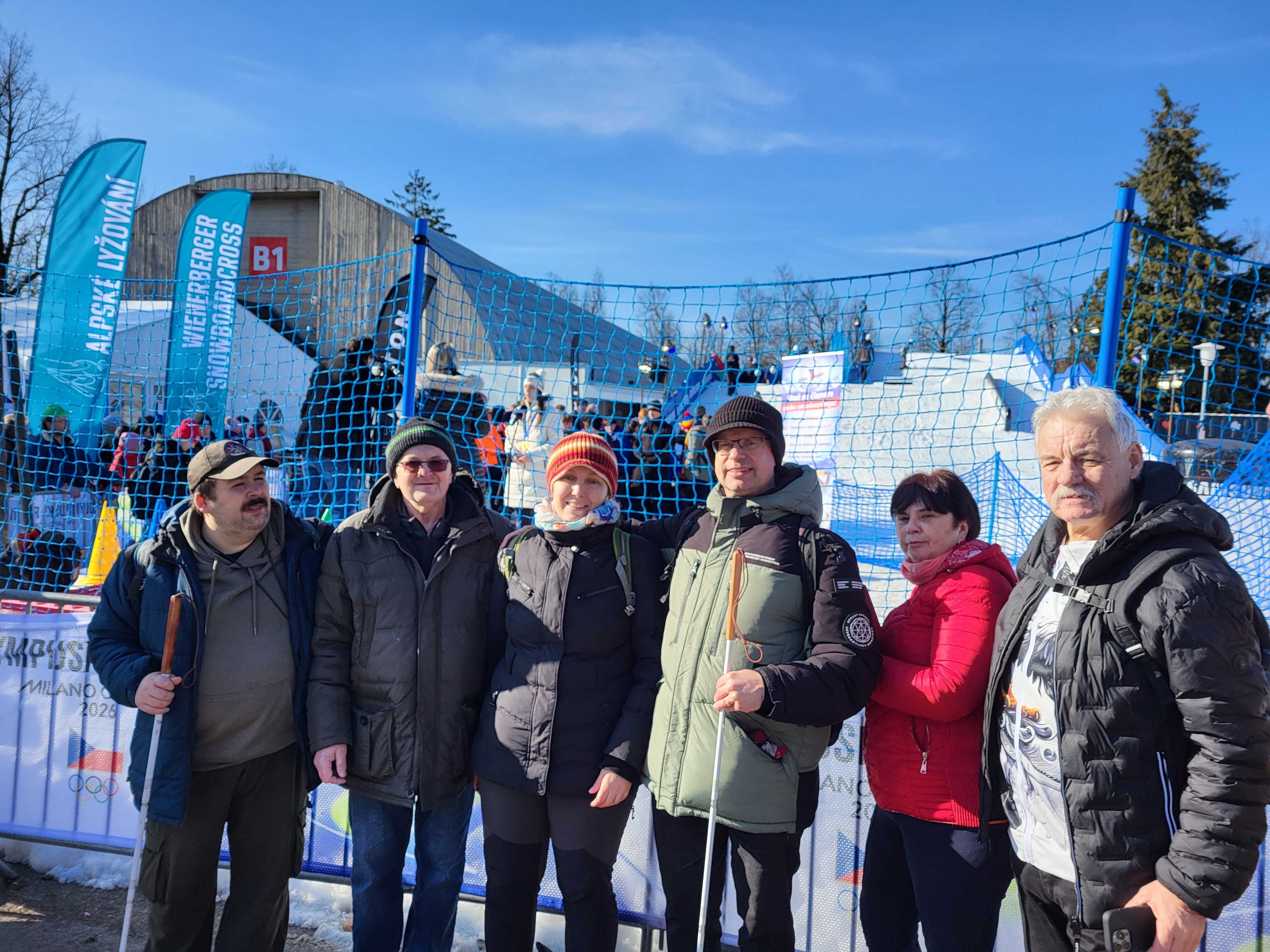 Na závěr se na nás přece jen usmálo štěstí – při odchodu z areálu jsme zahlédli i snowboardistku Zuzanu Maděrovou, a tak jsme si stihli pořídit společnou fotografii s olympioničkou v pozadí.