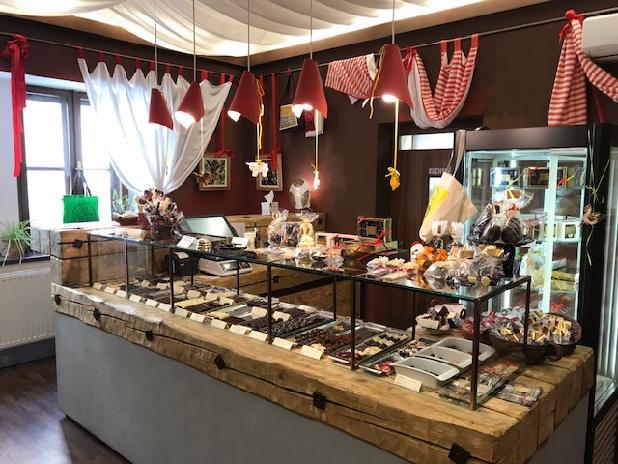 Po chutném obědě v Arcibiskupském gymnáziu následovalo sladké mámení v první Kroměřížské čokoládovně YESTERKA. Čokoládovna se nachází v centru města. Je sice malinká ale útulná. Paní majitelka byla velmi příjemná a snažila se naši skupince vše pěkně slovně popisovat. Na úvod nás krátce seznámila s historií čokolády, jejím zpracováním a skladováním. Zjistili jsme jakou nezastupitelnou úlohu má tempírka při zahřívání a chlazení čokolády. Pralinka musí dobře chutnat ale také, co nejdokonaleji vypadat. K jejich výrobě se proto používají tvarově různorodé formy. Na ukázku nám byla poslána zajímavá magnetická forma, která je určena na výrobu pralinek a rychlého přenosu dekoru na ní. S formou i s fóliemi na obtisk dekorativních vzorů jsme se mohli hapticky seznámit. Při povídání probíhala ochutnávka bílé, mléčné a hořké čokolády v podobě peciček tak i kousků kakaového bobu. Celý bob jsme si pro naší představu mohli vzít do ruky. Náš „bobek“ by jsme mohli připodobnit k velikosti fazolky a byl sklizen na kakaových plantážích v Ghaně. Jak to s tím bobem vlastně je, jsme se také následně dozvěděli. Kakaovník právý roste na plantážích 5 let než vydá svůj poklad. Boby se od rostliny ručně odsekávají mačetou a sbírají. Zelonožlutý plod měřící přibližně 30 cm je takový baňatý lusk, ve kterém je až 50 bobů bílé barvy. Jsou seskupeny v podelných řadách. Po vyloupání zůstává na bobech i vrstva dužiny, která má vysoký podíl cukru a nastává 5-8 denní proces fermentace pod banánovými listy. Po zkvašení mění svoji barvu a trpká chuť se mění na čokoládovější hořkost. Po té nastává přibližně týdení sušení, při kterém mají boby dokonce jen poloviční váhu. Na závěr se ještě praží, aby se ještě více podpořila charakteristická chuť bobu. Ve svém logu má čokoládovna YESTERKA jak jinak než pěknou ještěrku. A také přesně jak tomuto zvířátku i nám mrštně jazýček kmital při hojné degustaci pralinek. Vyrábí je z kvalitní belgické čokolády Callebaut. Jednalo se např. o pralinky Slaný karamel, Vlašský ořech, Amareto, Mango a mučenka, lámaná čokoláda s chilli, Sušený fík, pralinka se zeleným čajem, Citronová tráva v bílé čokoládě, Kardamon mlétý, pralinka s náplní piva Černý orel ajj. Pralinky vyrábí bez umělých přísad, a emulgátorů. Byly opravdu výborné, pěkně se leskly a čokoláda na zkus krásně křupala.