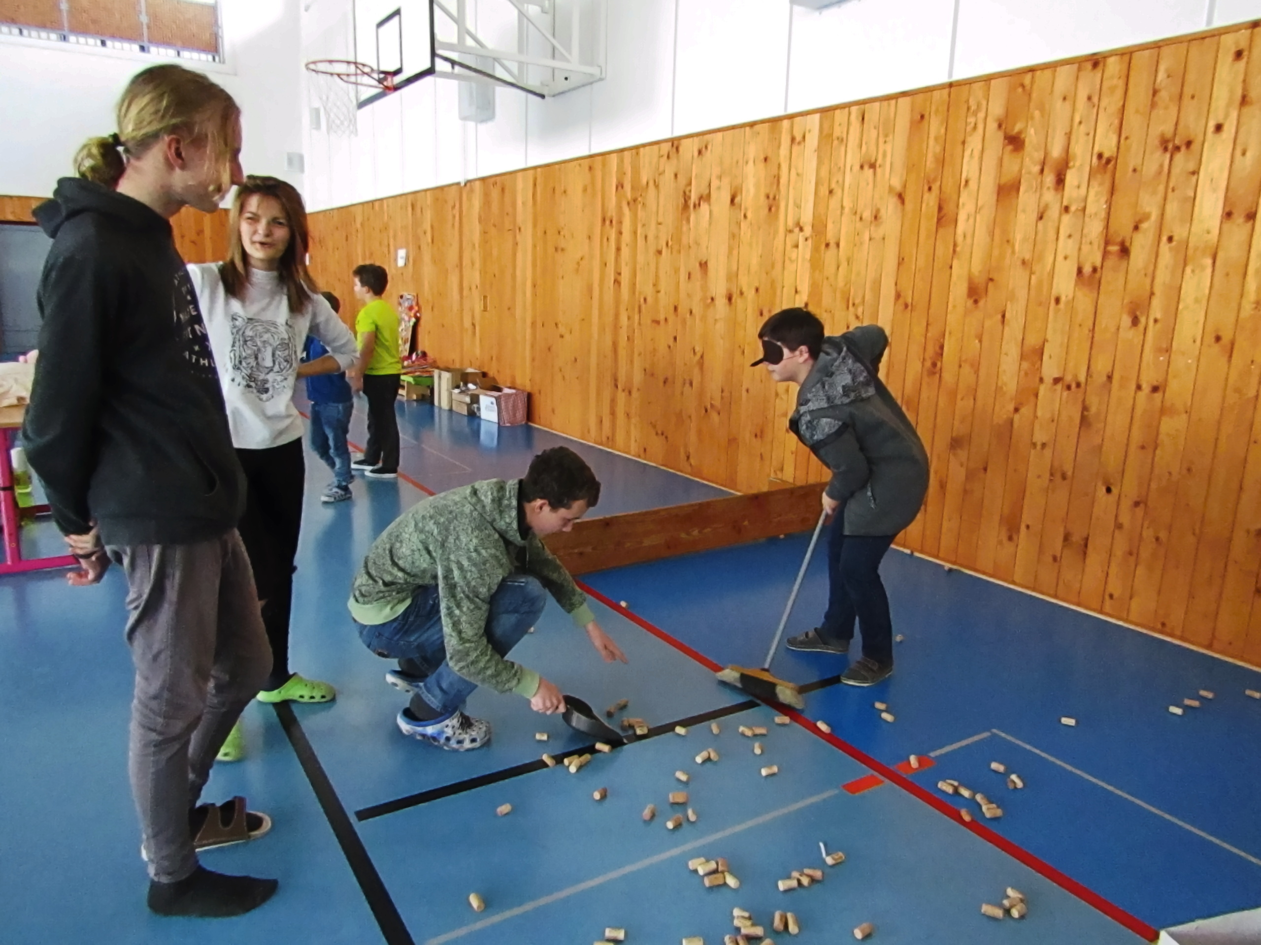 Důležité je, že si sami vyzkoušeli, jaké to je dělat věci bez toho, aniž by na ně viděli. To, co obvykle každý den zvládnou levou zadní, se najednou ukázalo být podstatně náročnější. S klapkami na očích si připravili snídani, přešli pomocí bílé hole pomyslnou trasu do školy, pod stolní lupou se zkusili podepsat a prohlédli si kompenzační pomůcky. Na jiném stanovišti si vyzkoušeli showdown – aplikovaný stolní tenis pro nevidomé, zastříleli si zvukem naváděnou pistolí, zahráli si stolní hry a dokonce i kuželky. Poté se přesunuli na místo, kde si měli ustlat postel, roztřídit odpad, pověsit prádlo a vyzkoušet další činnosti spojené s každodenním životem.