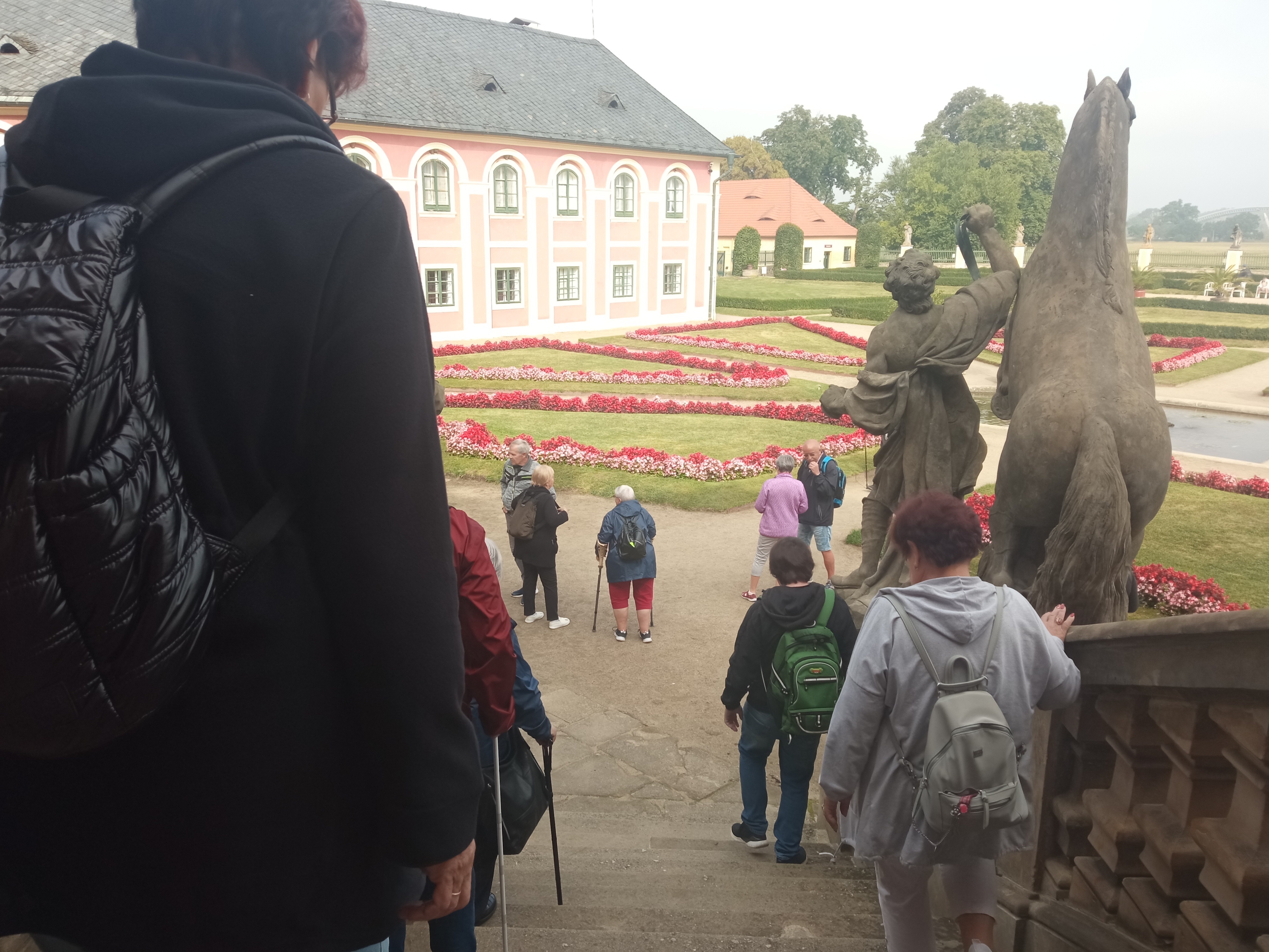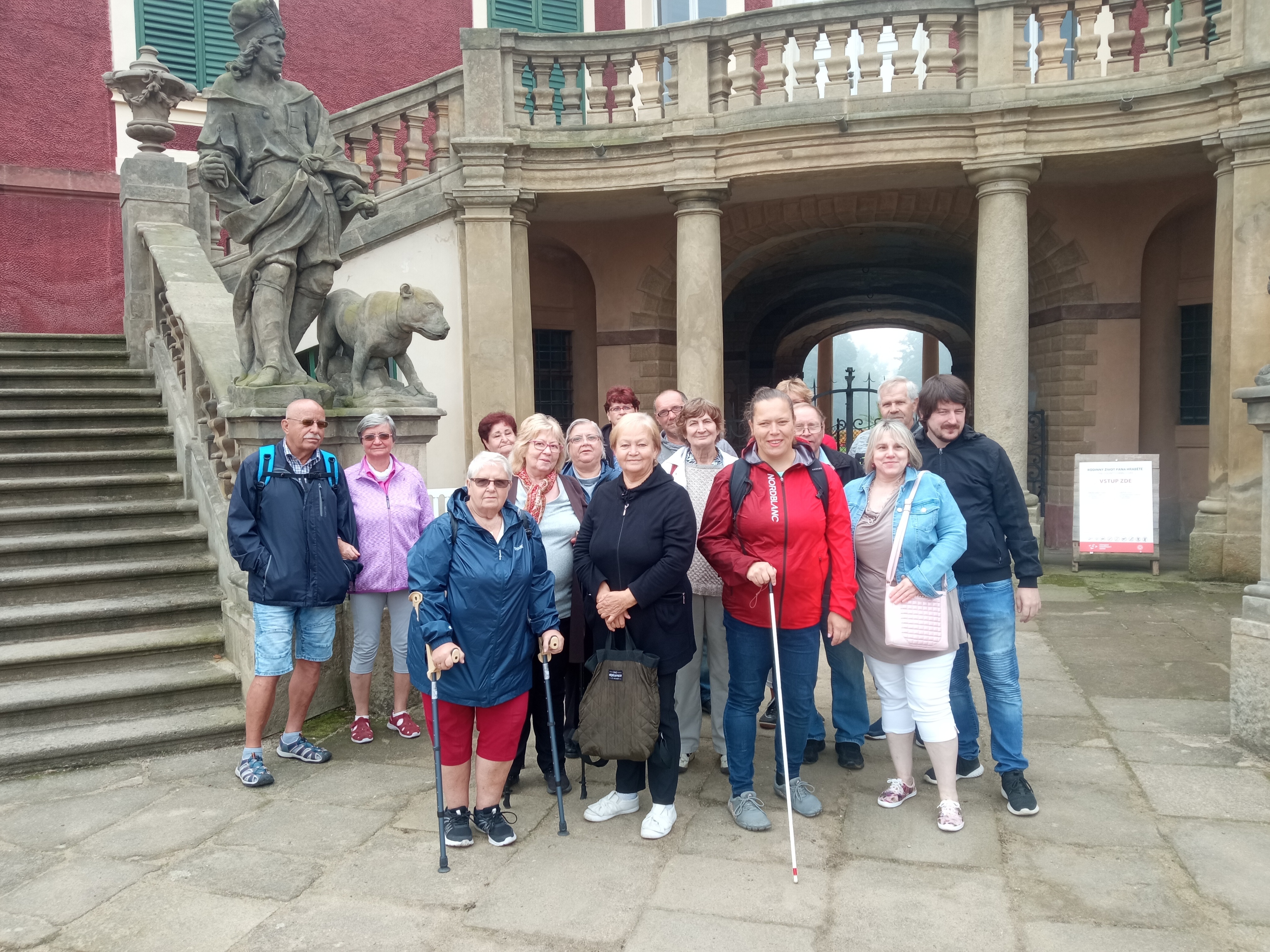 V úterý 26. 9. jsme se vydali na celodenní výlet na zámek Veltrusy a do blízkého resortu Svět. Dozvěděli jsme se o bohaté historii zámku, procvičili si orientaci v neznámém prostředí, zlepšili si fyzickou kondici s využitím trekových holí a díky haptické prohlídce si užili výlet všemi smysli.