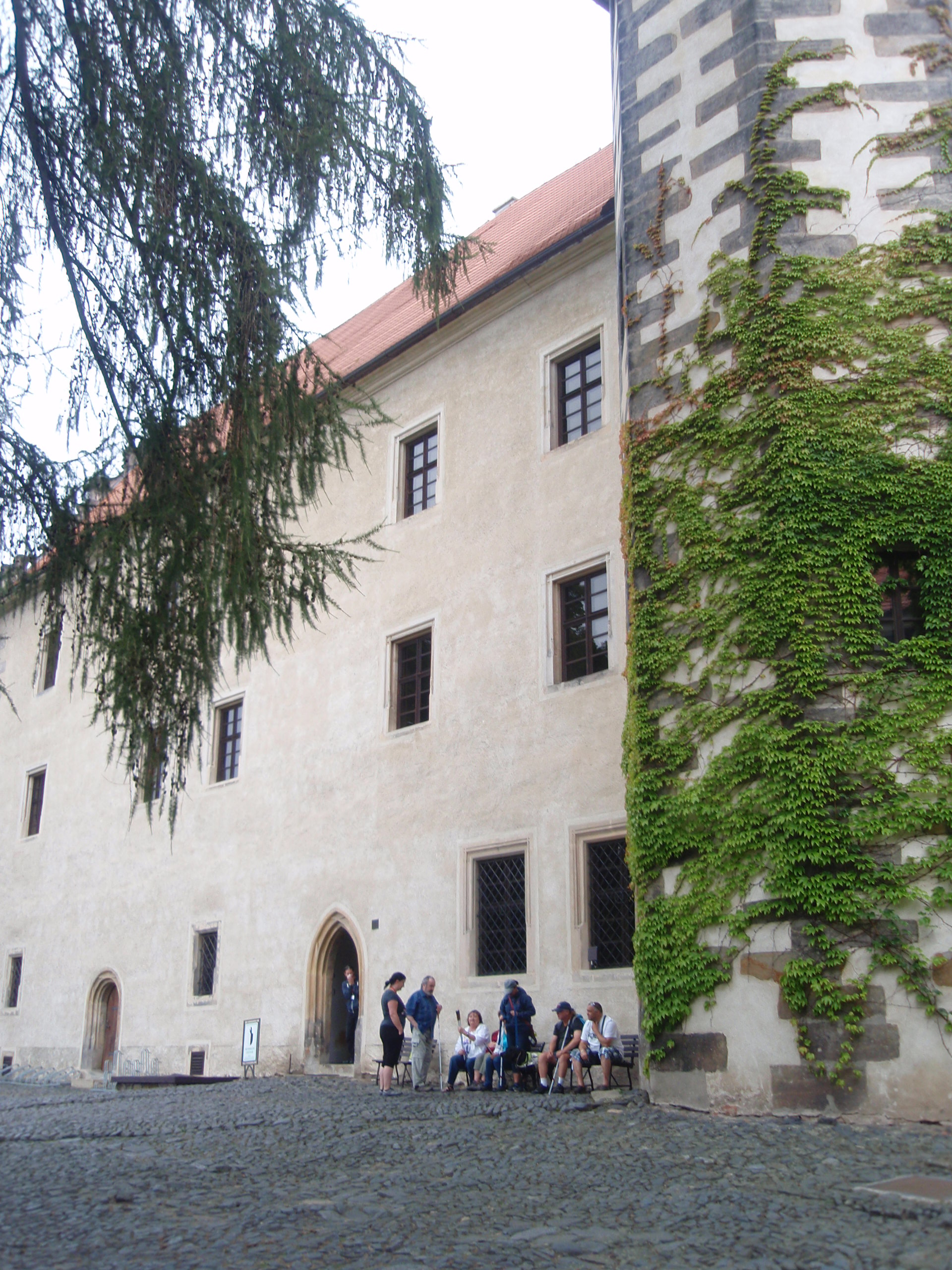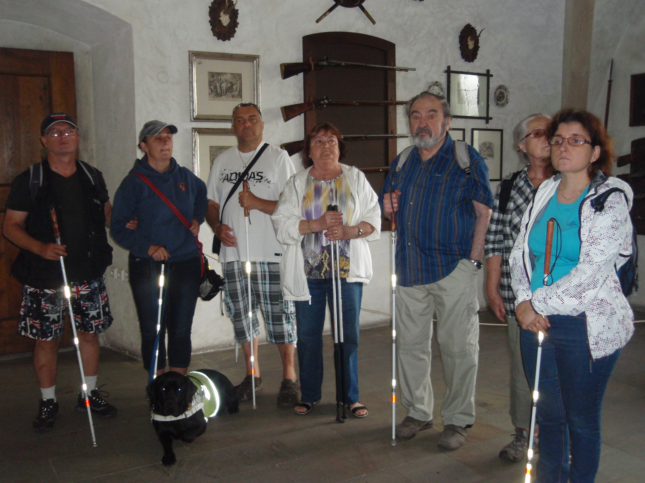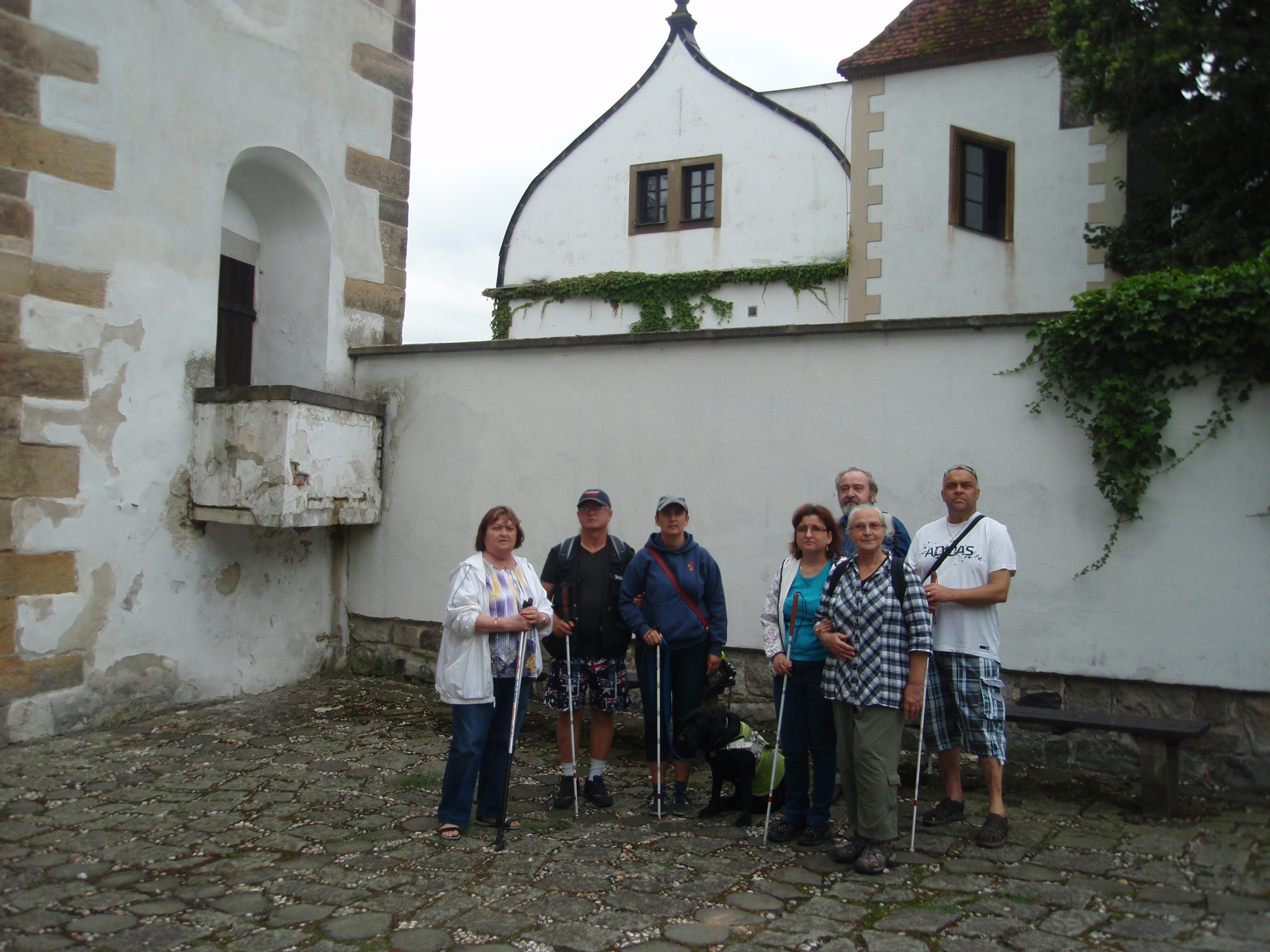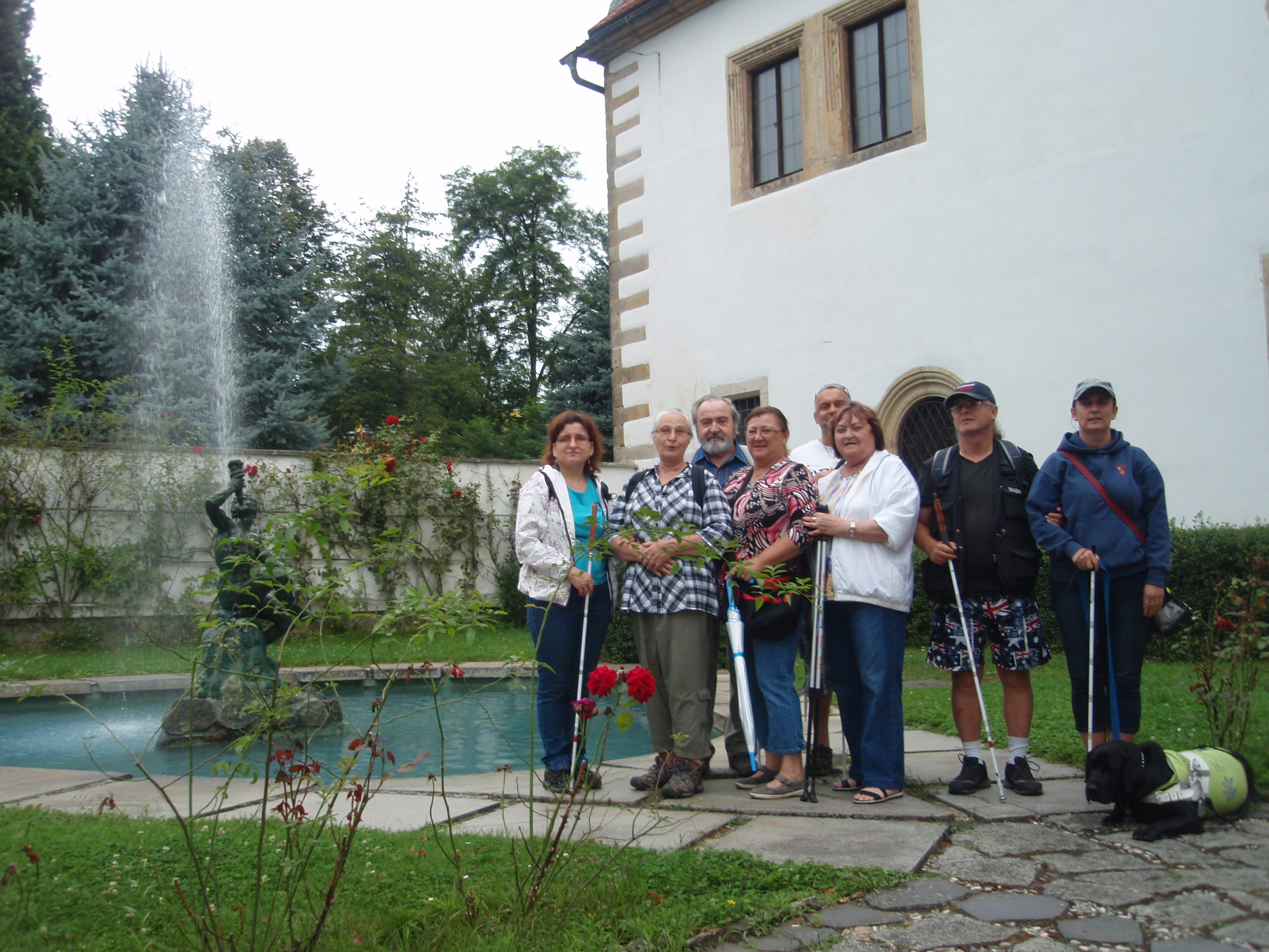 Rádi poznáváme naši historii a k tomu patří i návštěvy hradů a zámků. Tentokrát jsme ve středu 3.srpna společně navštívili Dolní zámek v Benešově nad Ploučnicí. Cesta vlakem byla příjemná. Při procházce městečkem jsme procvičovali chůzi v neznámém prostředí s menším počtem průvodců a zvládli jsme to i ve trojicích a v zástupu.