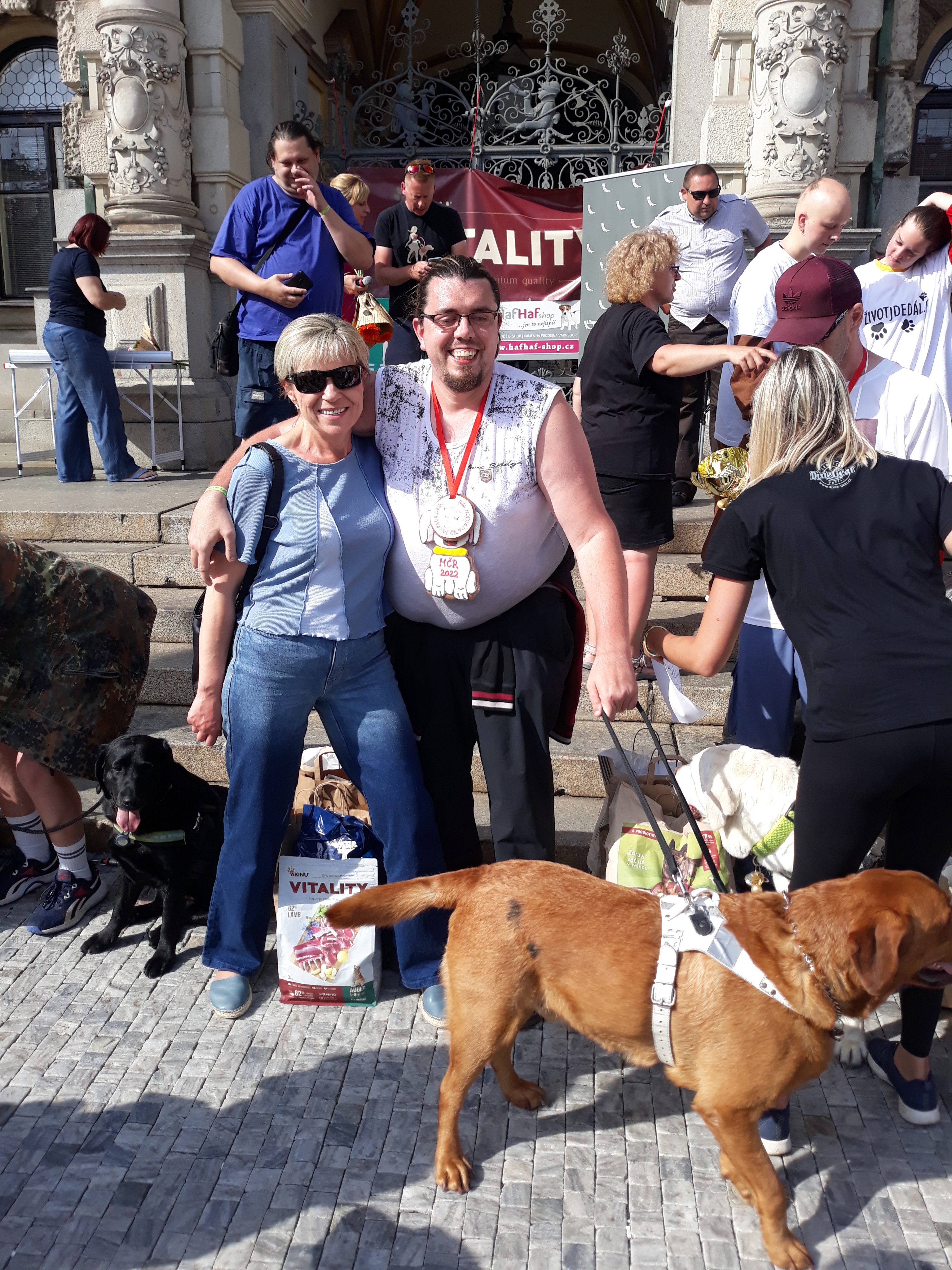 Závodu se zúčastnil také náš předseda liberecké odbočky SONS ČR pan J. Pikeš se svým psem Rafem a obhájil čtvrté místo v celkovém pořadí. Na akci jsme využili možnosti prezentace různých kompenzačních pomůcek pro zrakově postižené a nevidomé.