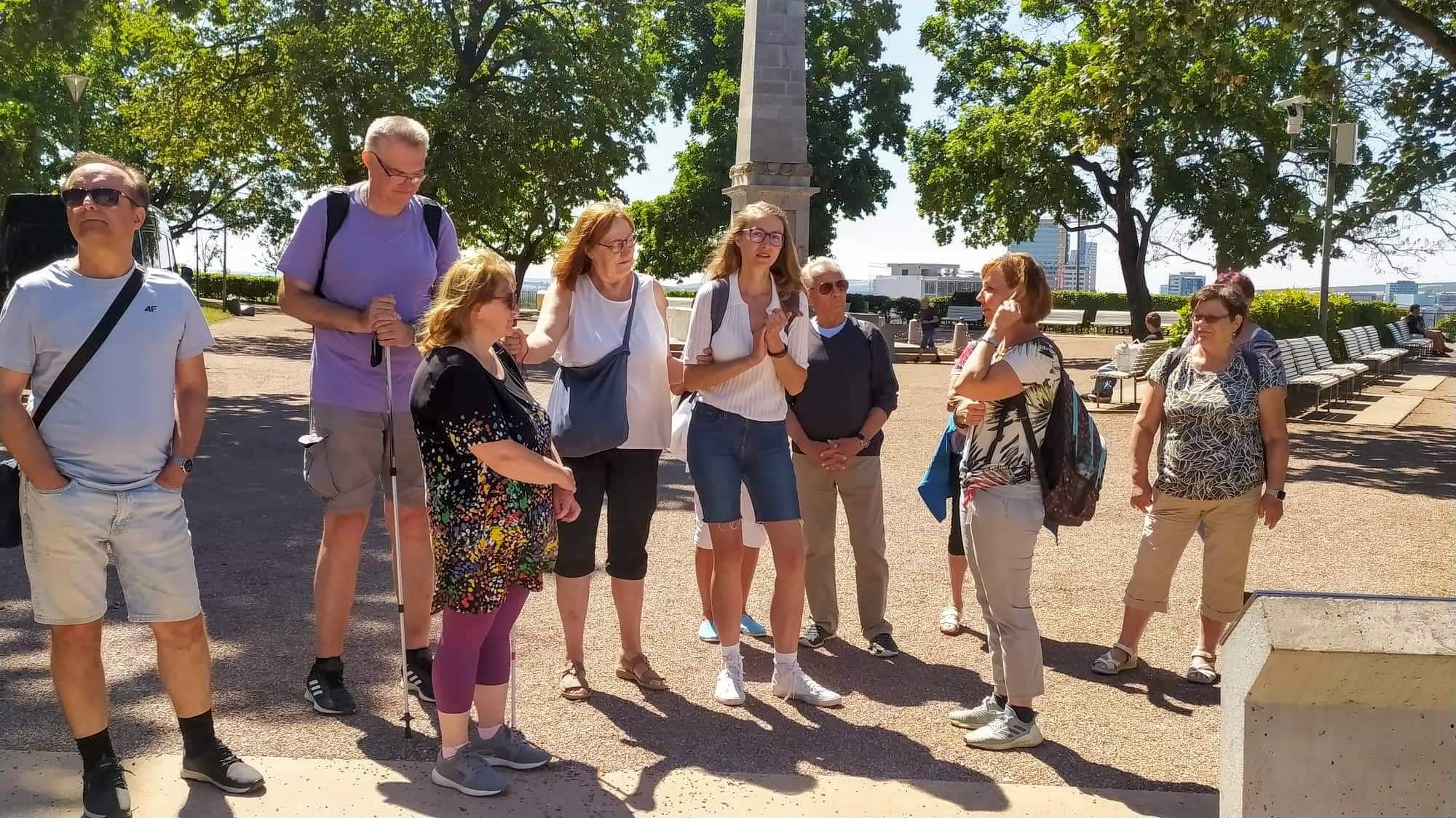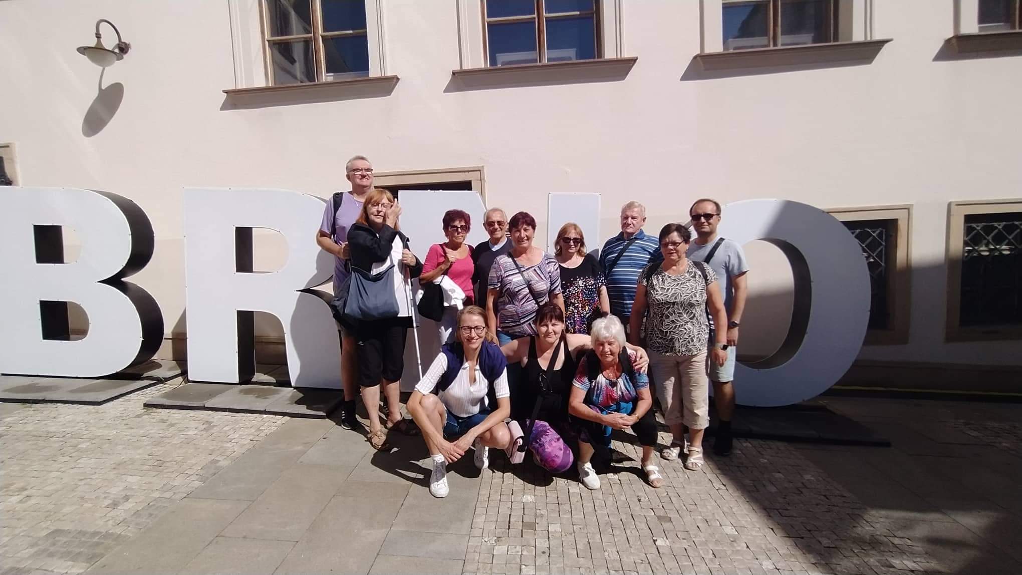 Tentokrát jsme se vydali trochu dále než „ZA HUMNA“. Navštívili jsme jihomoravskou metropoli Brno. Začali jsme svižně, kulturní památkou, původně pozdně románským a raně gotickým hradem Veveří. Následovala plavba lodí po Brněnské přehradě. Chtěli jsme se podívat i na Kraví Horu, na jedinečnou výstavu nafukovacích modelů planety Země, planety Mars a Měsíce umístěných v parku. Bohužel nás déšť vyhnal na hotel. Dobrou náladu nám nepřekazilo ani to, že hotelová restaurace byla mimo provoz. Objednali jsme si pizzu a paní Hanka, která měla ten den narozeniny, přinesla i ohnivý doušek na přípitek. Další den se vyvedl nádherně. Čekala nás komentovaná prohlídka města. Samozřejmě jsme neopominuli návštěvu „Brněnského draka“.