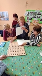 Ale pozor, nejen karbanem je člověk živ. Dámy z Klubu společenskýh herr jsou také velmi zvídavé. Tentokrát je naše sociální pracovnice Iveta zasvěcuje do tajů Braillova písma.