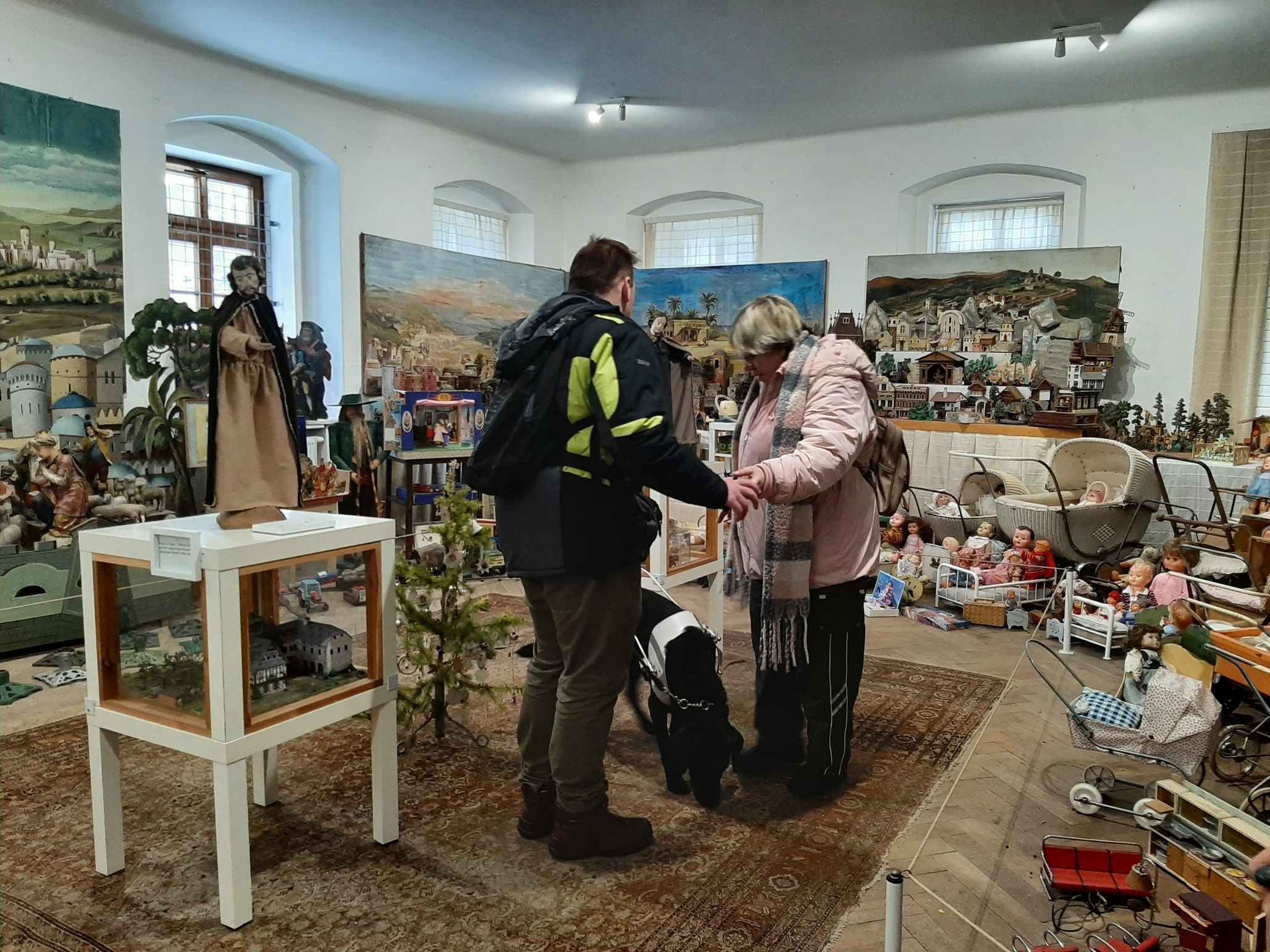 Kryštofovo Údolí se rozkládá v hlubokém údolí říčky Rokytka pod svahy Ještědského hřbetu a je proslavené jako betlémářská obec. Pro naši cílovou skupinu - slabozrakých a nevidomých, zde byla připravena komentovaná prohlídka betlémů. Expozici tvoří více než dvacet betlémů nebo jejich částí. Je tu například tzv. cikorkový betlém, betlémy dřevěné, keramické a pohyblivé. Před návštěvou muzea jsme velmi chutně poobědvali v restauraci Údolanka a před návratem domů jsme zvládli dát si výbornou kávu v malé kavárně stylizované do doby 1. republiky. Vzhledem k počasí byl náš výlet od začátku do konce velmi dobrodružný, přesto byli všichni zúčastnění nadšení.
