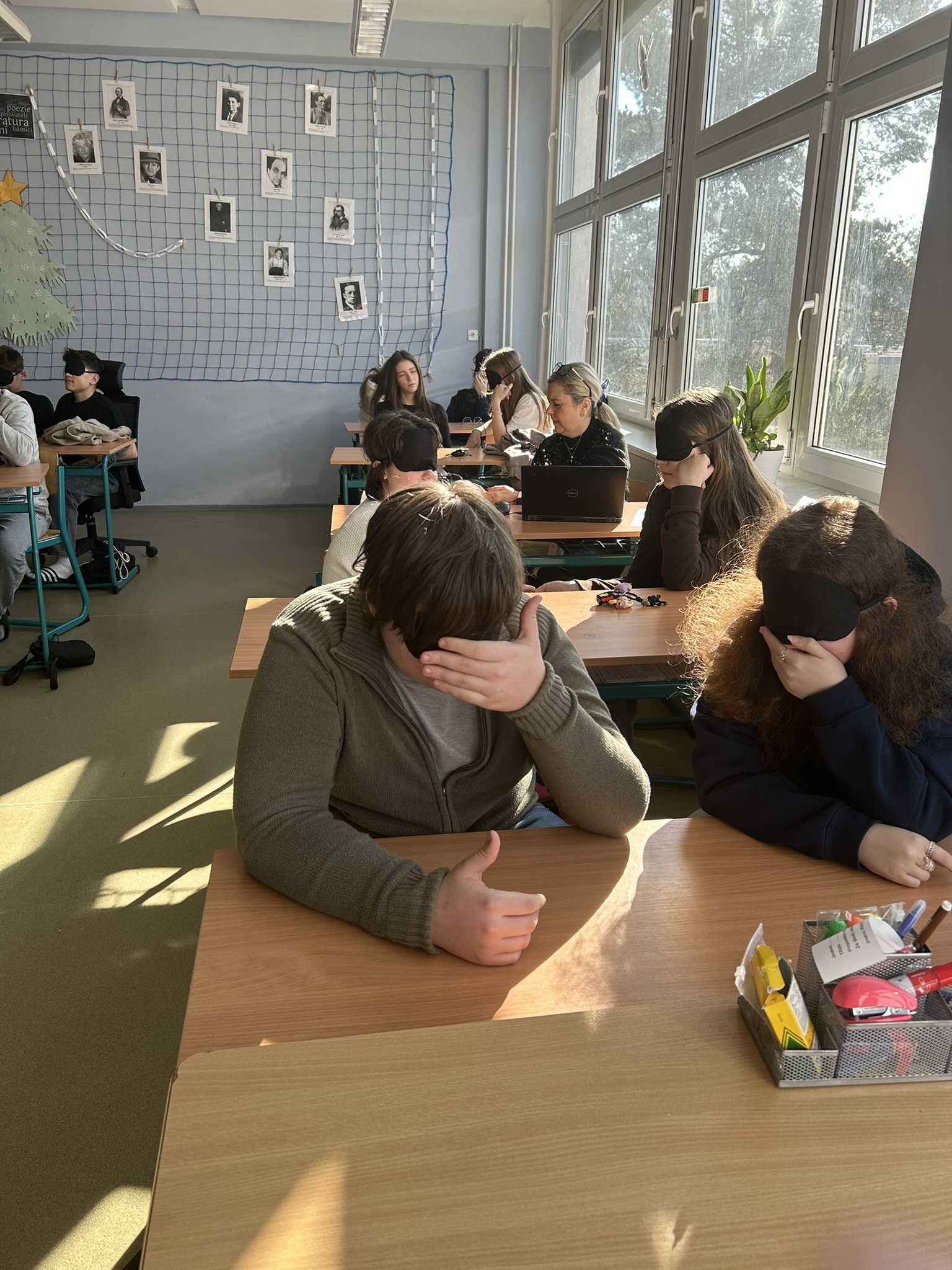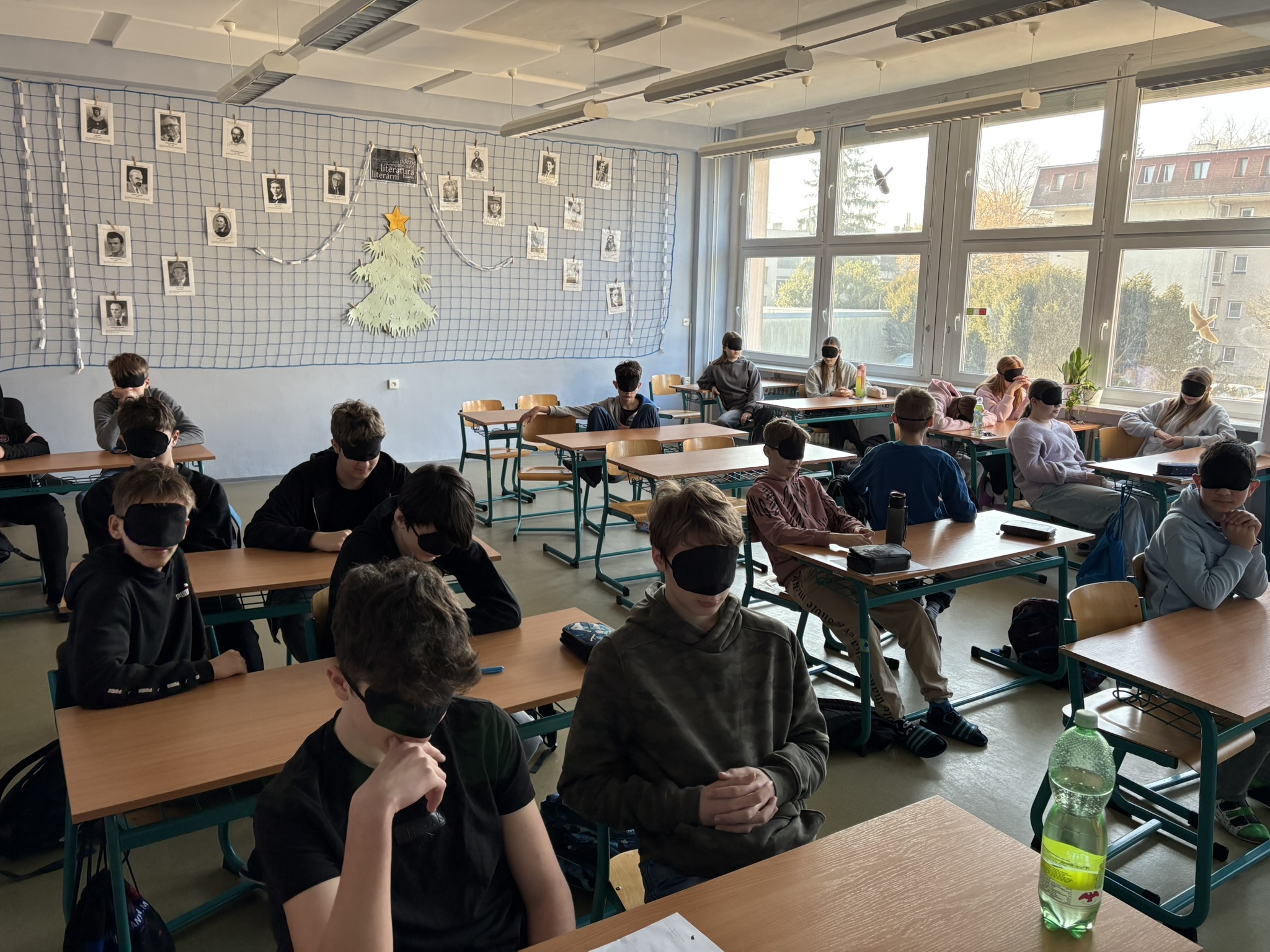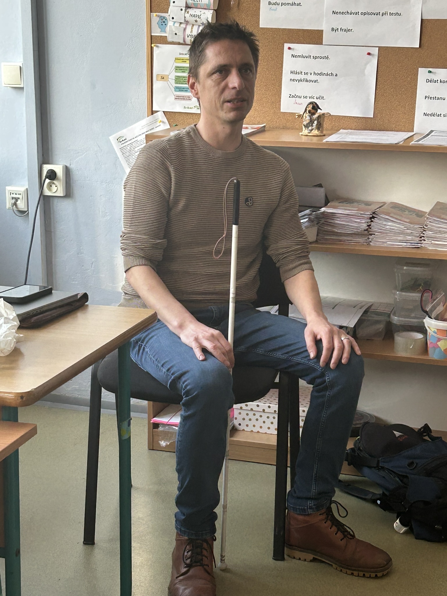 Naše návštěva ve škole Za Alejí byla, jako již tradičně, velice poučná a to jak pro děti, tak i pro nás. Společně jsem si povídali o tom, jak se nevidomí orientují v prostoru, jaké používají pomůcky, jak čtou Braillovo písmo a pohybují se pomocí bílé hole. Děti si některé pomůcky samy vyzkoušely - třeba chůzi s bílou holí a hmatové hry, které prověřily nejenom jejich smysly, ale i trpělivost.