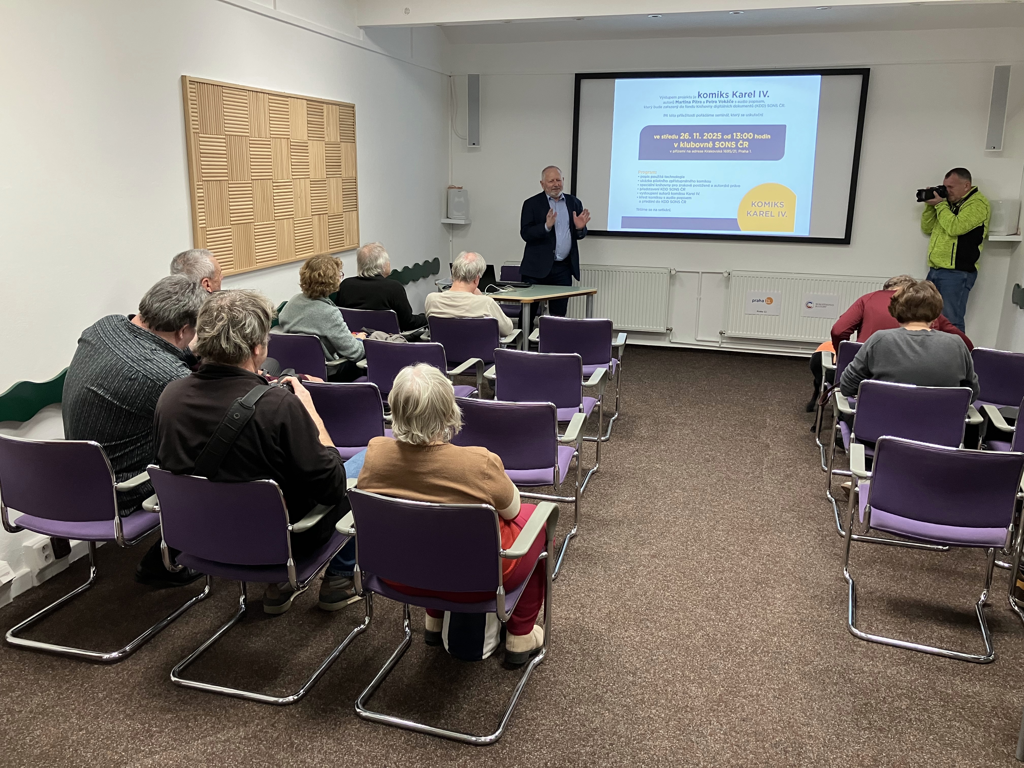Spolek e-Inkluze, z.s. a Knihovna digitálních dokumentů SONS ČR, z.s. spolupracovaly v roce 2025 na pilotním (ověřovacím) projektu "Zpřístupnění komiksové literatury osobám s těžkým zrakovým postižením". Naše pobočka Praha-střed přispěla k realizaci projektu zhotovením potřebného audio popisu. Výstupem projektu je komiks Karel IV. s audio popisem, který byl zařazen do fondu Knihovny digitálních dokumentů (www.kdd.cz).