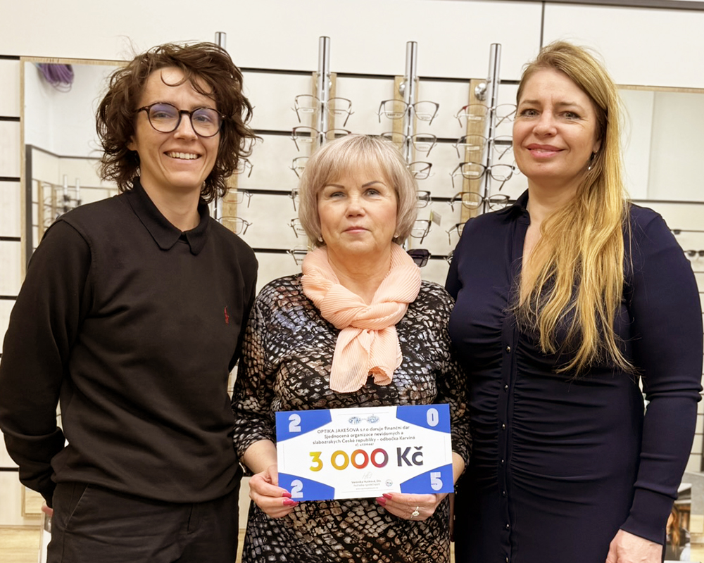 Děkujeme optice Jakešová za finanční dar ve výši 3 000 kč, který nám předali osobně v Karviné.