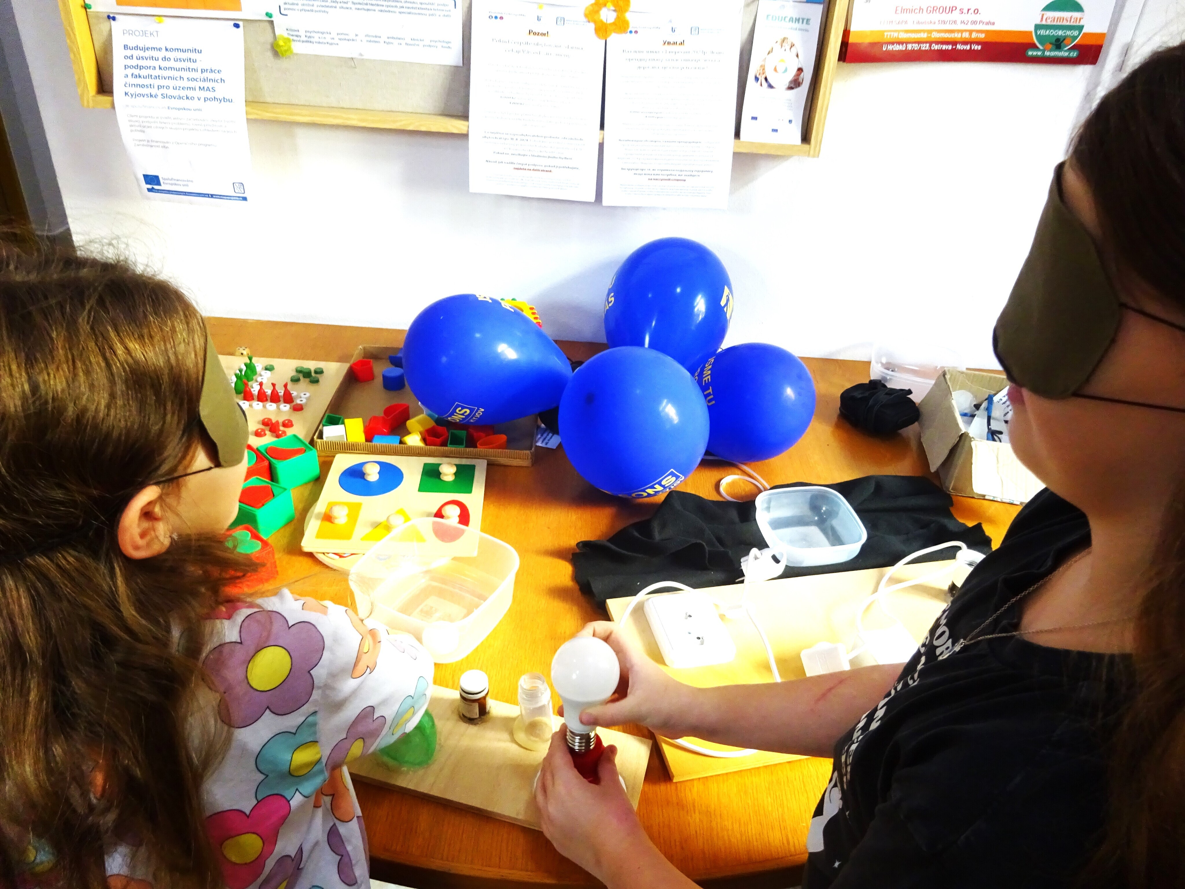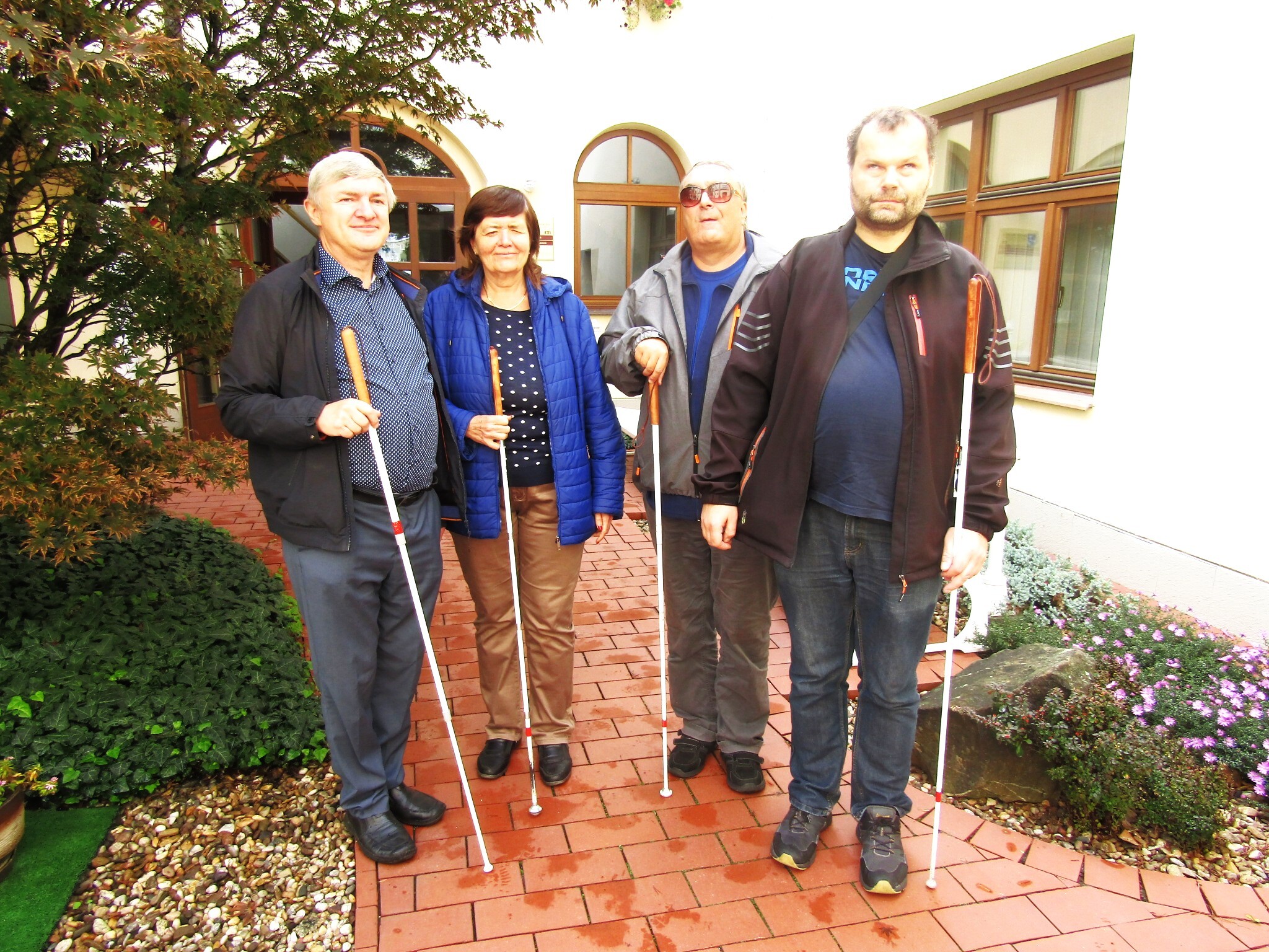 V prostorách osvětlených pak byly pro návštěvníky připraveny na ukázku či vyzkoušení drobné kompenzační pomůcky, které těžce zrakově postiženým kompenzují ztrátu zraku. I zde probíhaly dlouhé diskuse, návštěvníci se svěřovali se svými pocity po absolvování vinárny ve tmě, padala spousta dotazů na různé životní situace při ztrátě zraku a vypořádání se s touto situací. Pro nás bylo potěšující, že lidé odcházeli nejen s potištěnou skleničkou, jako připomínku na právě prožitý zážitek, ale s uvědoměním si, co ta slepota obnáší, popřípadě jak nám to svým empatickým jednáním ulehčit.