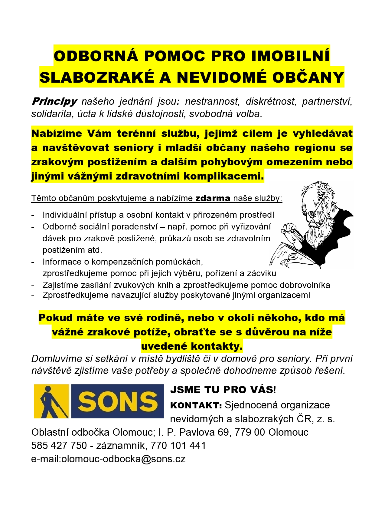 - Odborná pomoc pro imobilní slabozraké a nevidomé občany - leták