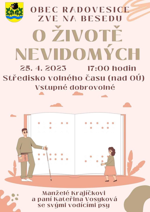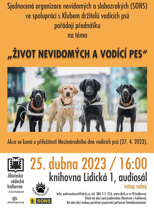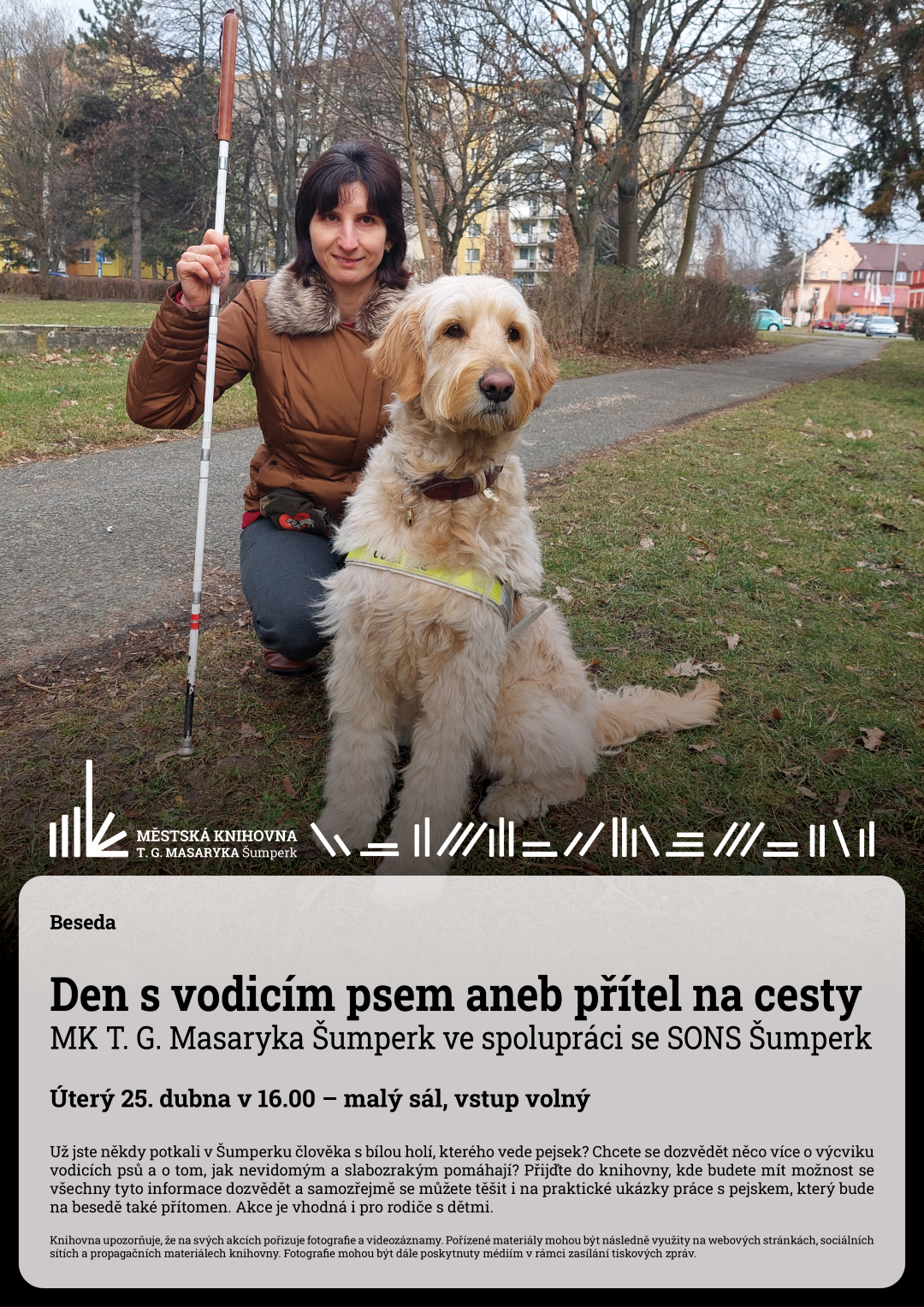 Další informace: Beseda o tom, co všechno může zrakově postiženým pomáhat k lepšímu životu a jakou roli hraje vodicí pes.