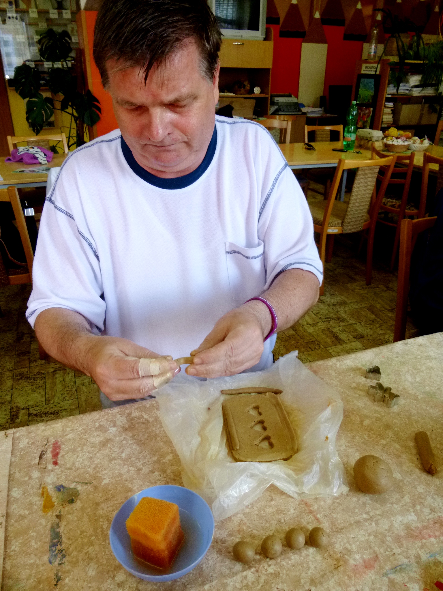 Práce s hlínou je pro zrakově postižené příjemná a přirozená. Tak proč si nevyrobit i něco pěkného do svého bytu a navíc účelové. Pokud je odborné vedení a asistence - žádný problém.